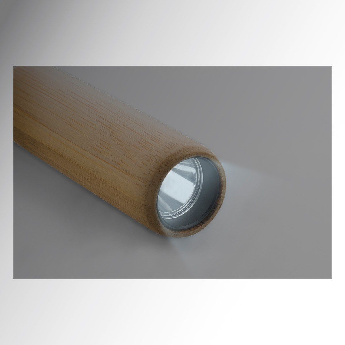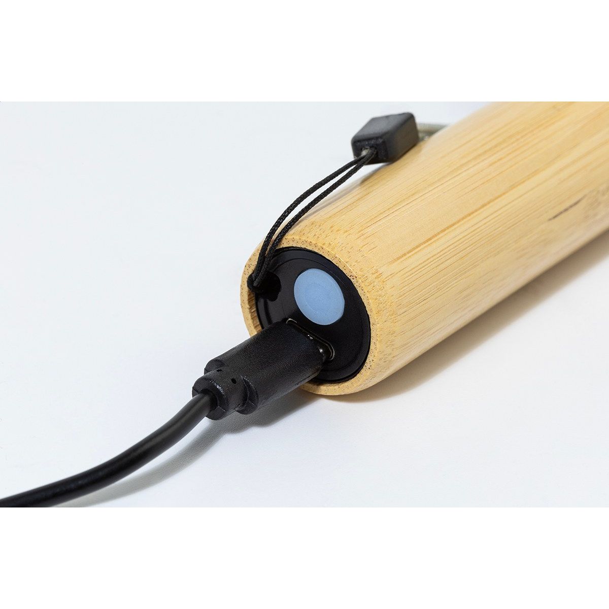 Bambusová baterka s vestavěnou USB dobíjecí baterií (320 mAh), 1 LED světlem a poutkem na přenášení. Se 3 režimy svícení. Včetně USB nabíjecího kabelu.