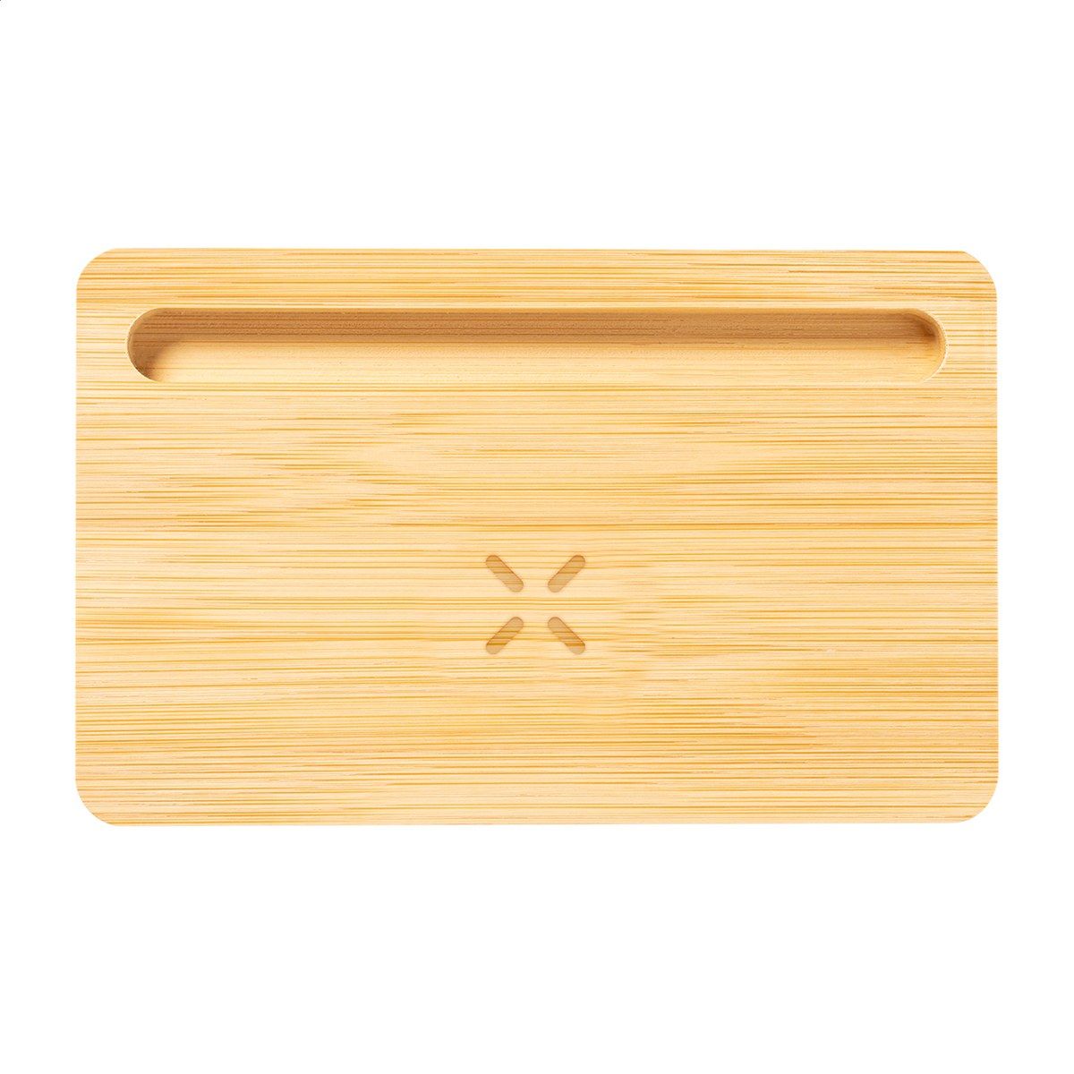 Bambusový stolní organizér a držák na mobilní telefon s vestavěnou bezdrátovou rychlonabíječkou (15W). S USB portem pro nabíjení 2 zařízení současně (1 bezdrátově a 1 přes kabel). Max. výstup: 2000 mA. Včetně USB nabíjecího kabelu.