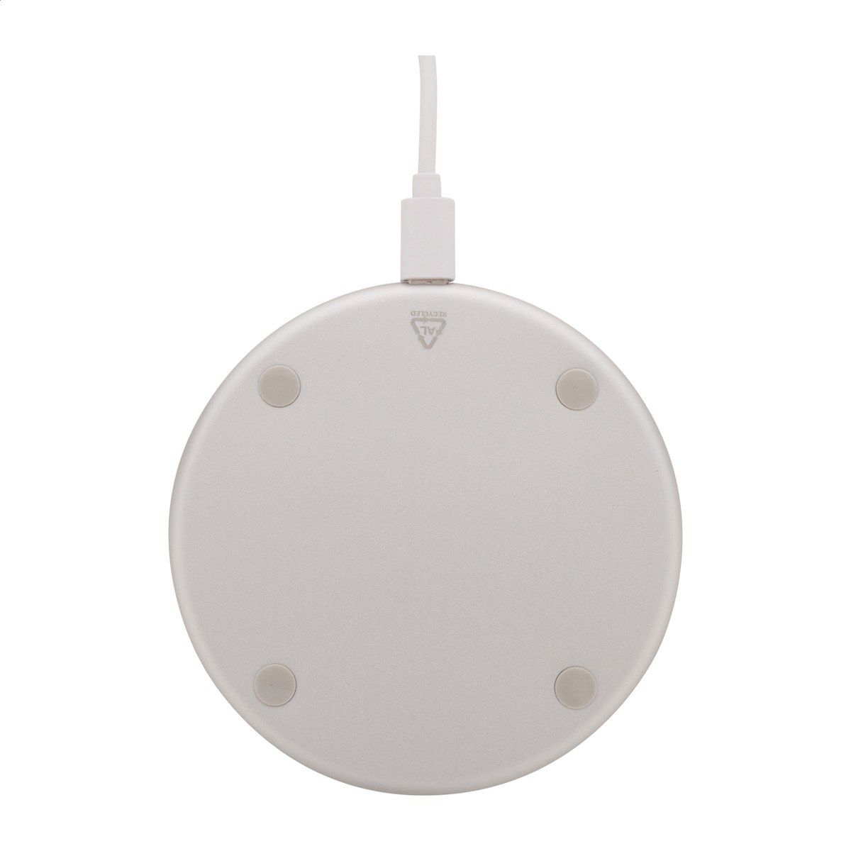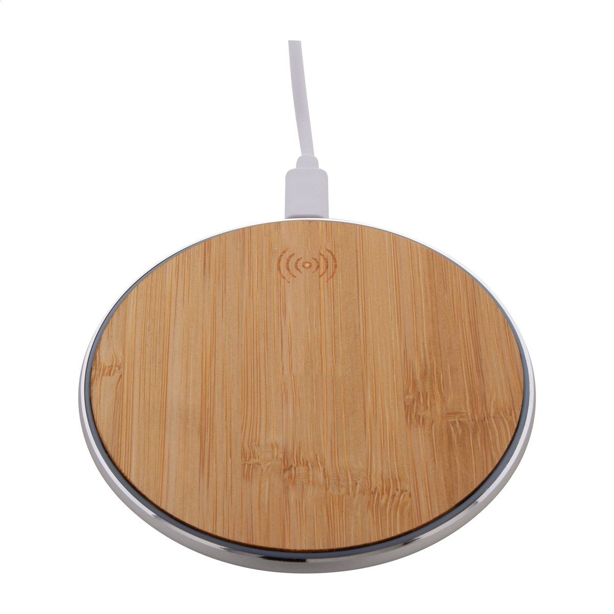 Bezdrátová rychlonabíječka (15W) v pouzdře z recyklovaného hliníku a bambusu. Včetně USB nabíjecího kabelu.