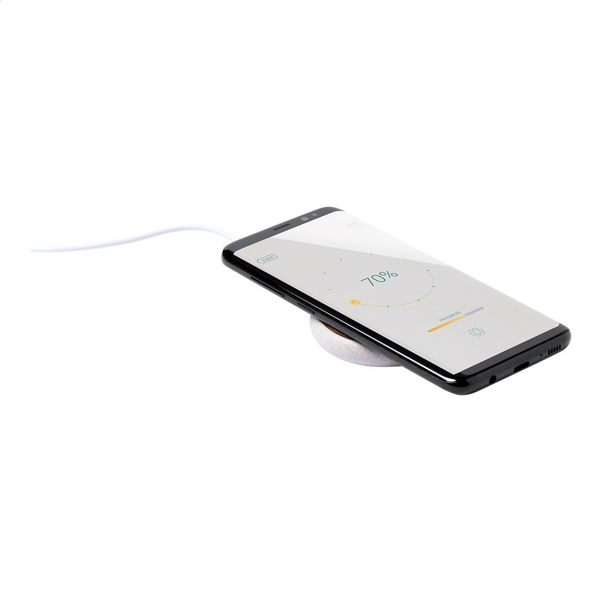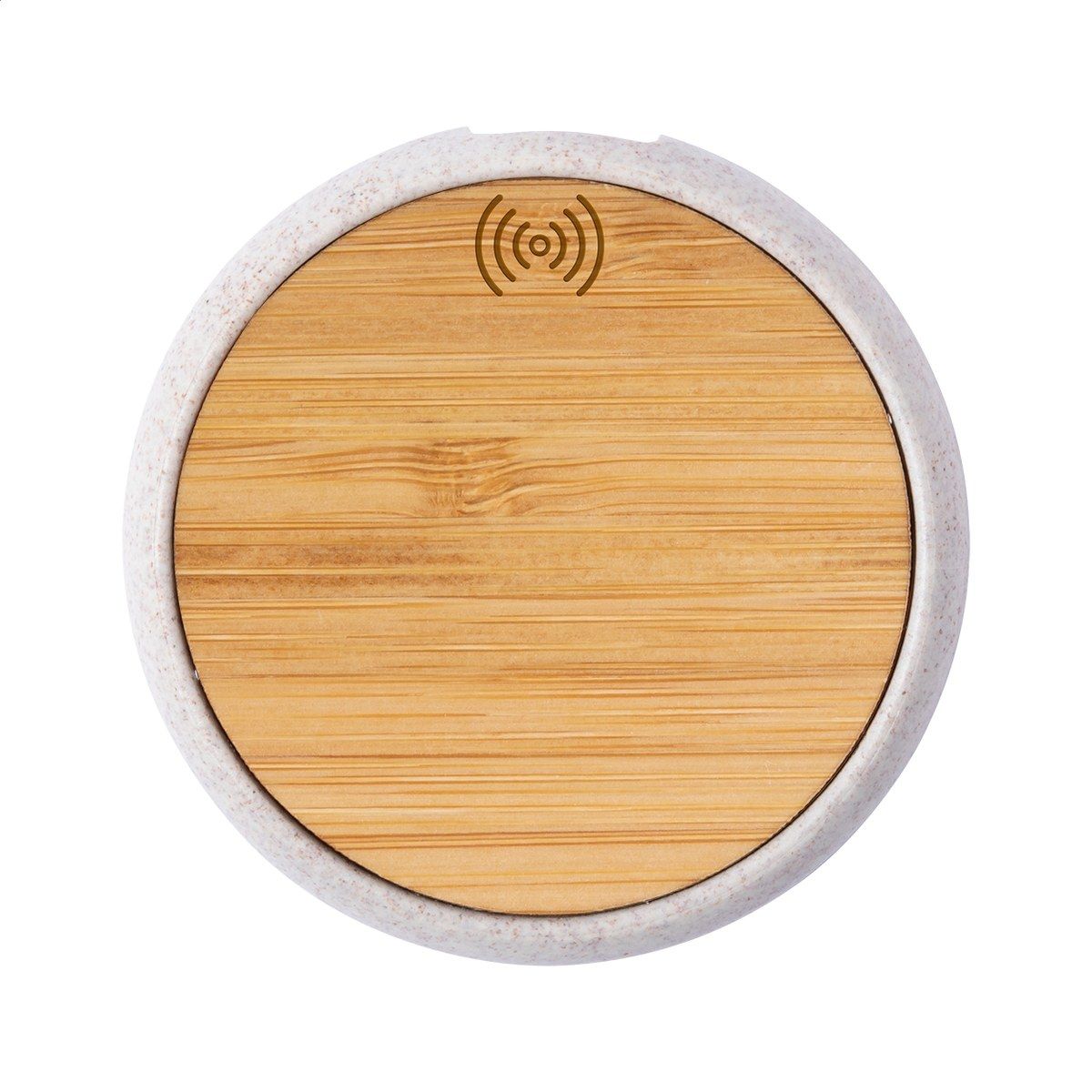 Bezdrátová nabíječka (10W) v plastovém pouzdře z bambusu a ekologické pšeničné slámy. Včetně kabelu USB.