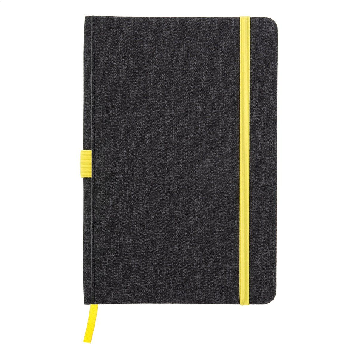 Texturovaný blok A5, potažený PU kůží se záložkou, gumičkou a držákem pera. 96 linkovaných listů.