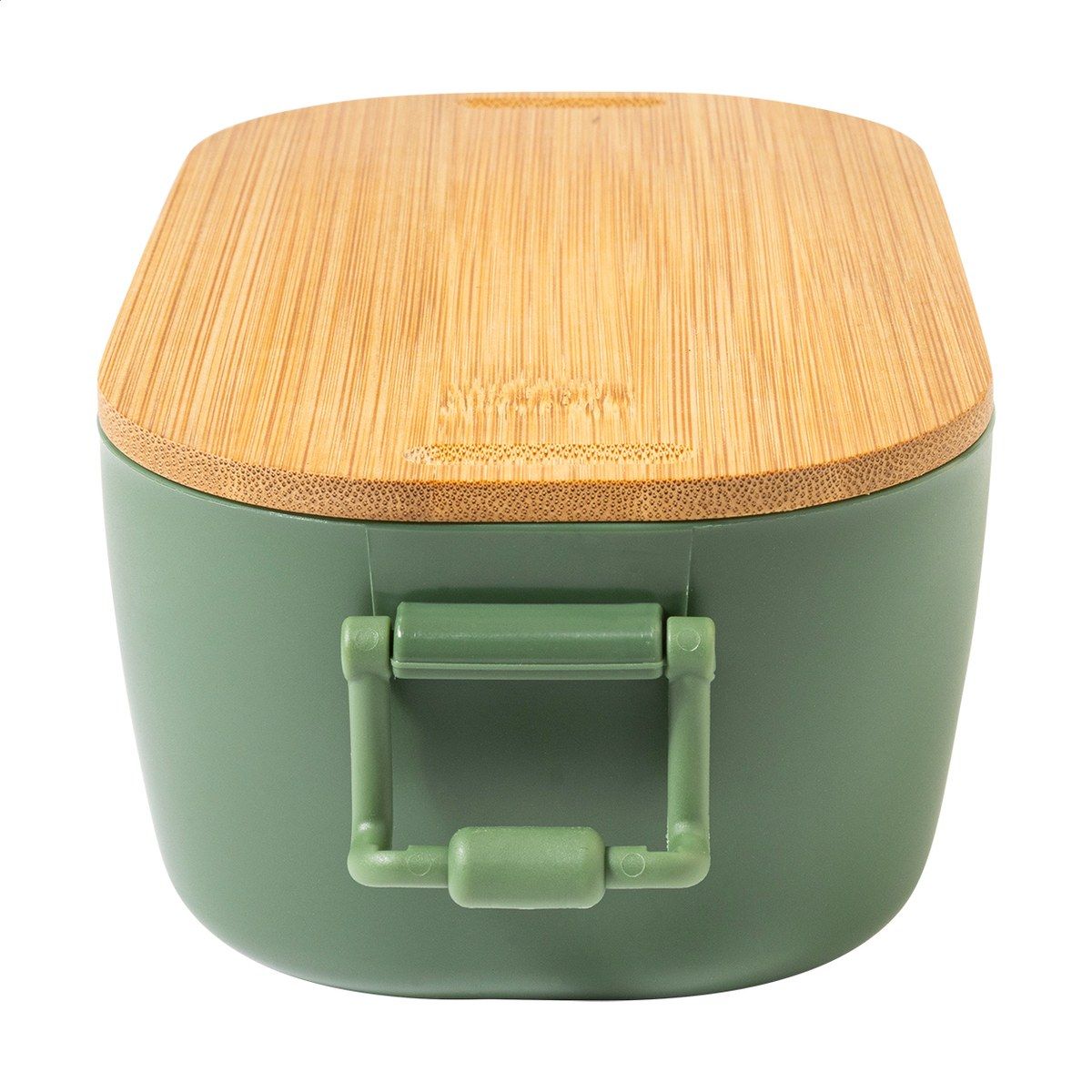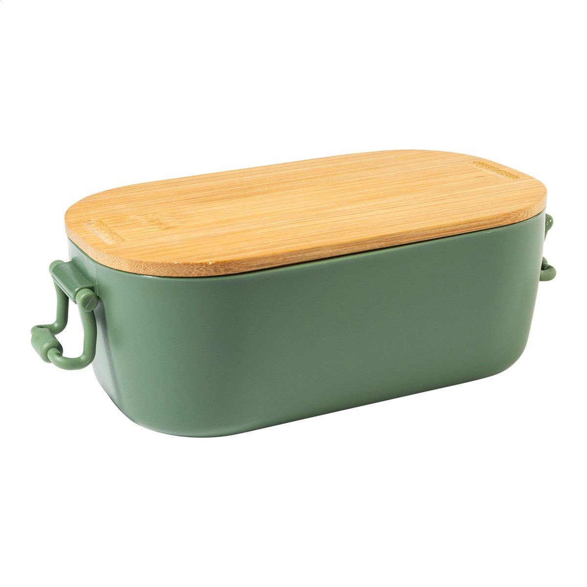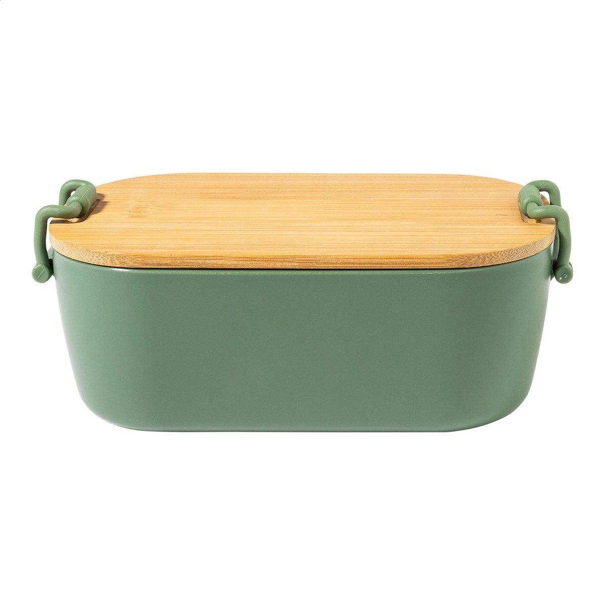 Box na jídlo z PP plastu s bambusovým víkem a uzávěrem na přezku, 1000 ml.
