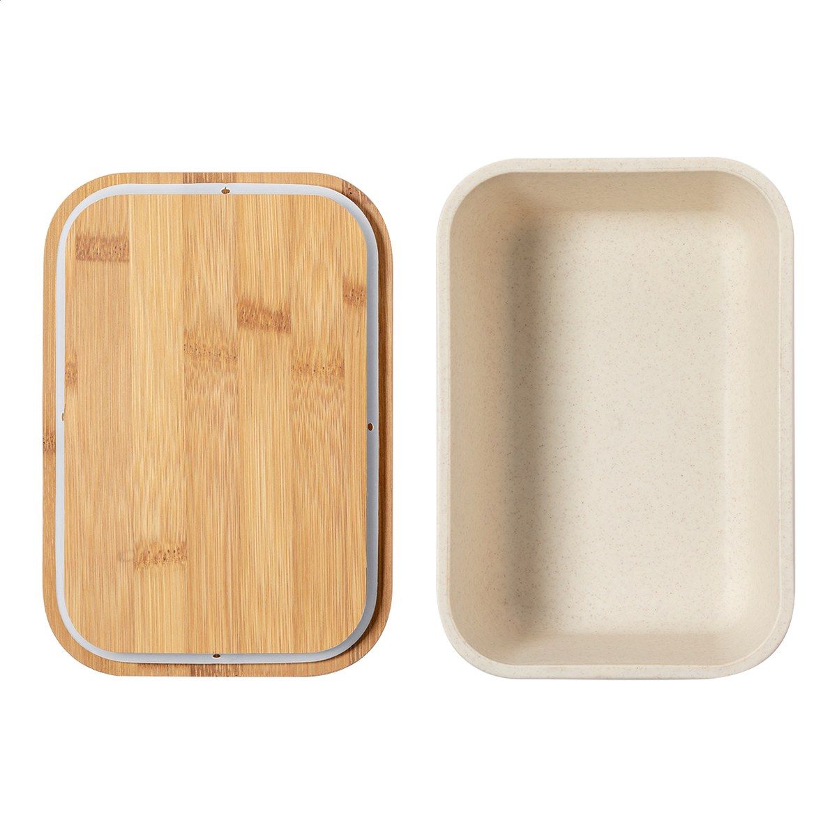Box na jídlo z PP plastu s bambusovým víkem a elastickým páskem. 1000 ml.