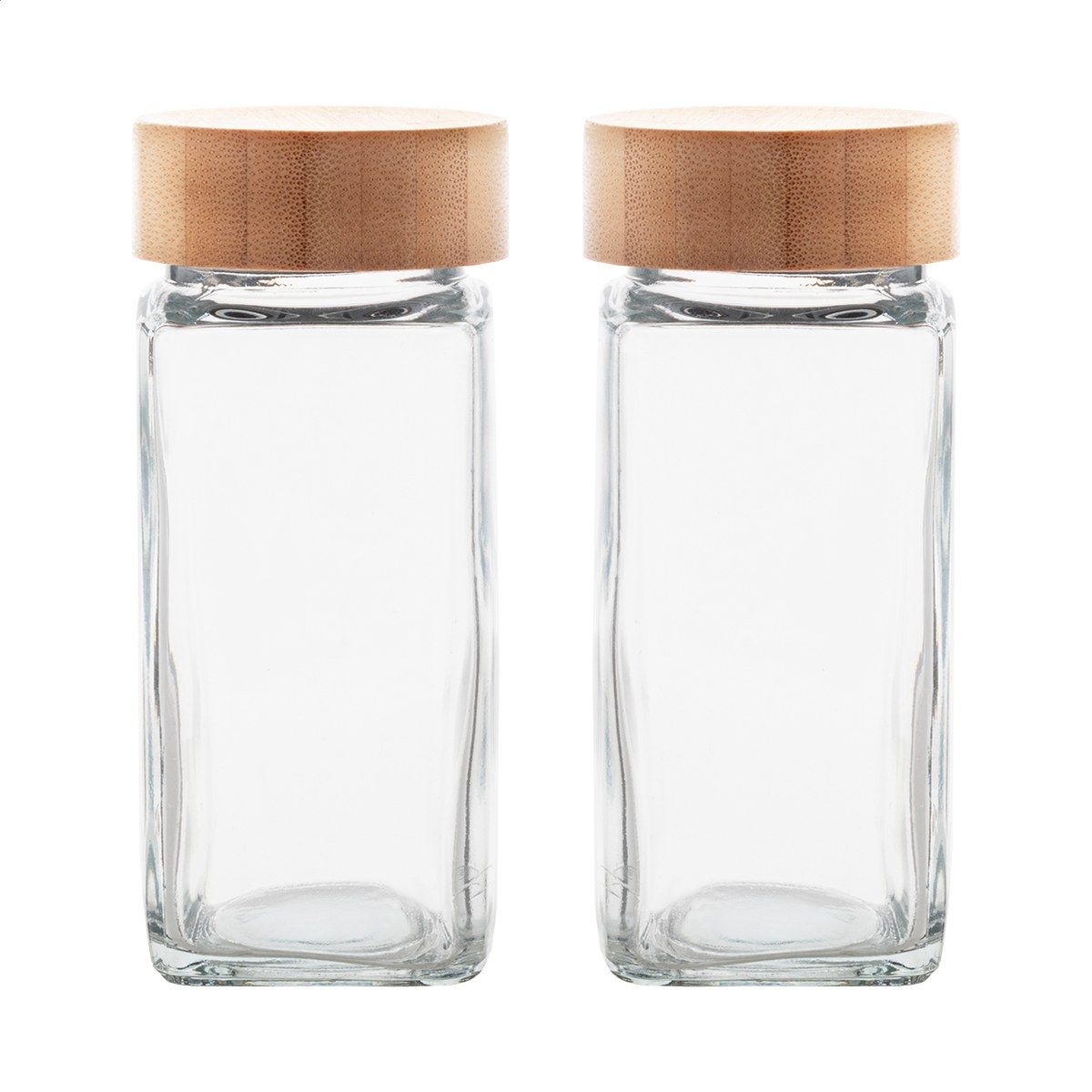 Sada 2 ks skleněných kořenek s bambusovým víčkem, 120 ml. V kraftové papírové krabici.