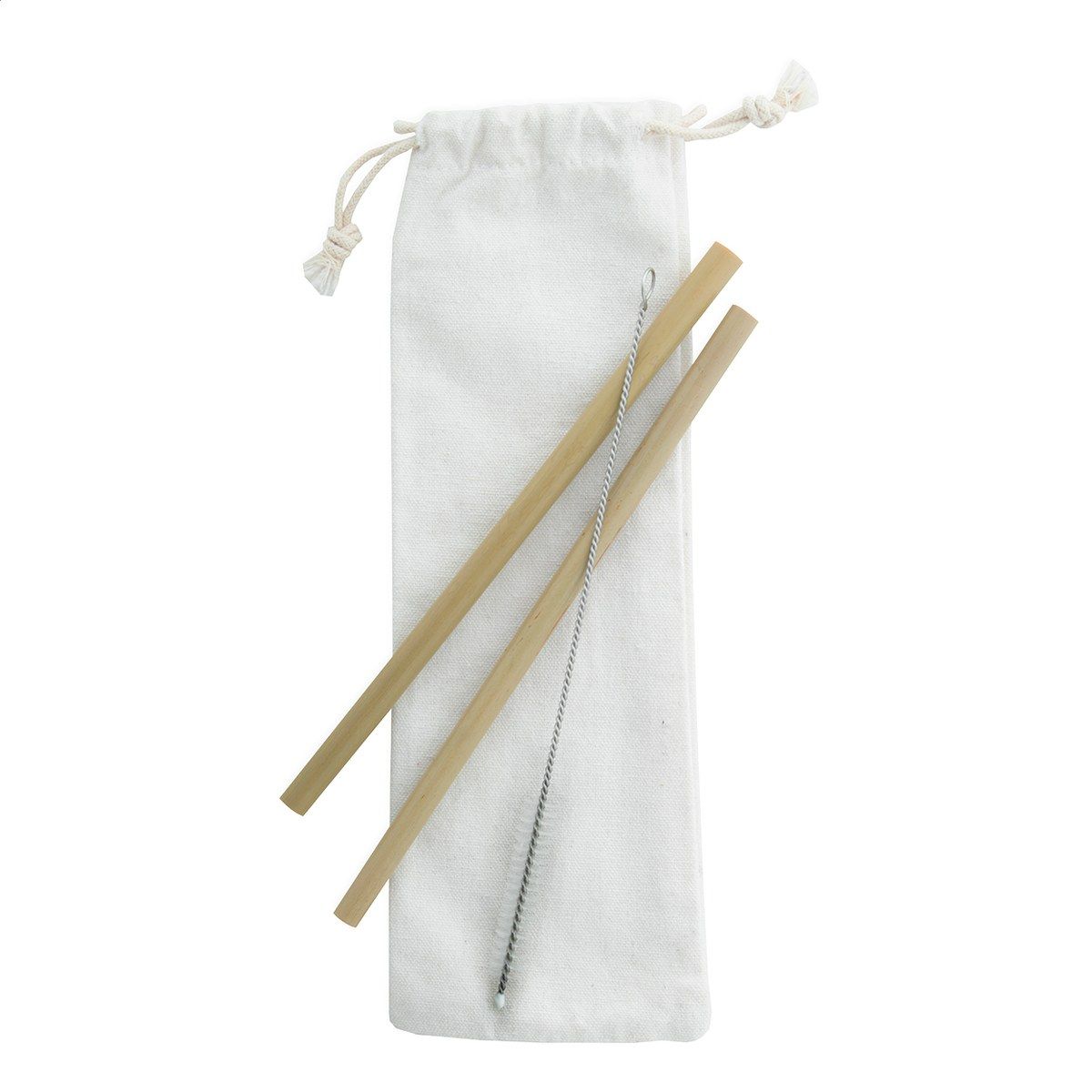 Sada 2 opakovaně použitelných přírodních bambusových brček a čistícího kartáčku v bavlněném pouzdře. Průměr a povrch brček se může lišit.
