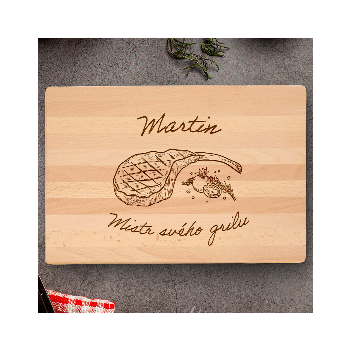 Dárkové masivní prkénko s gravírováním, motiv Mistr grilu