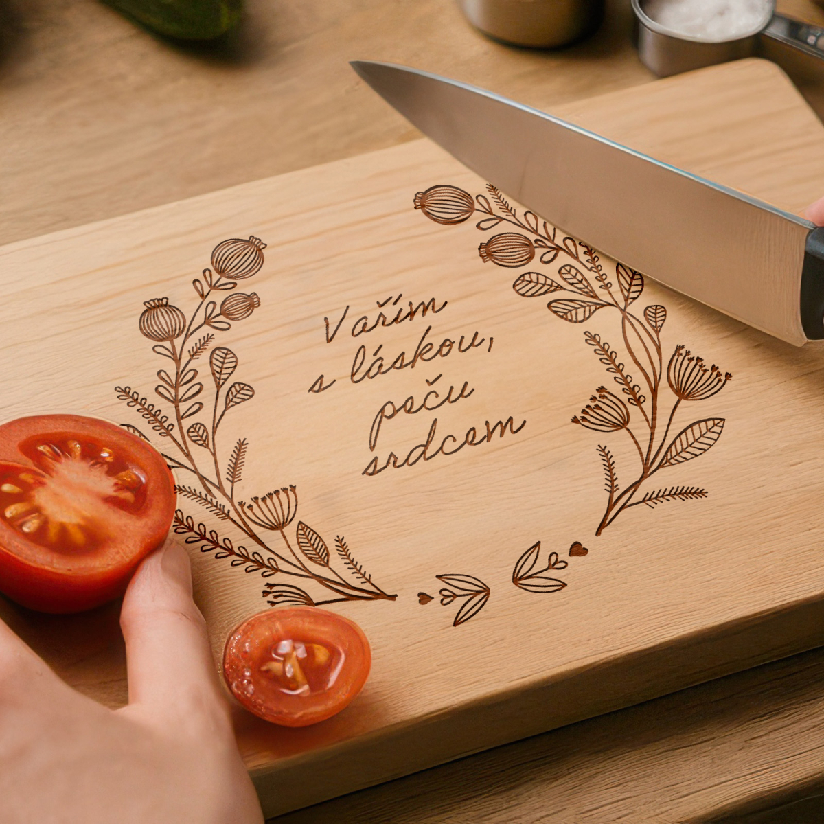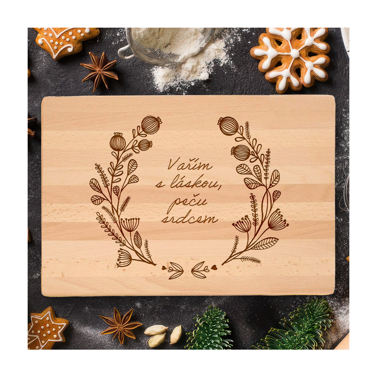 Dárkové masivní prkénko s gravírováním, motiv makovice
