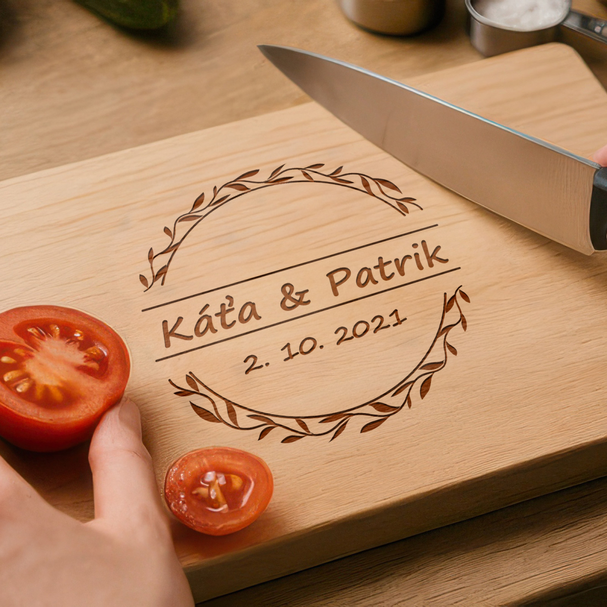 Dárkové masivní prkénko s gravírováním Svatební 3