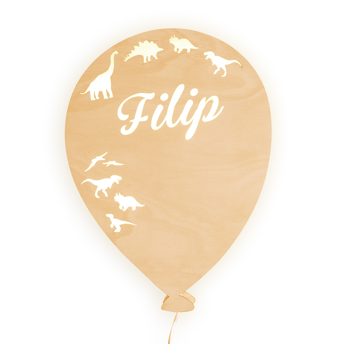 Dřevěná lampička - Balónek s dinosaury se jménem