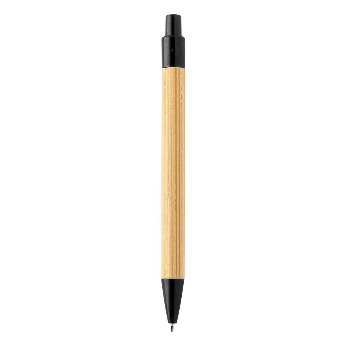 Kuličkové pero z bambusu s klipem a špičkou ze slámy, s modrou náplní.