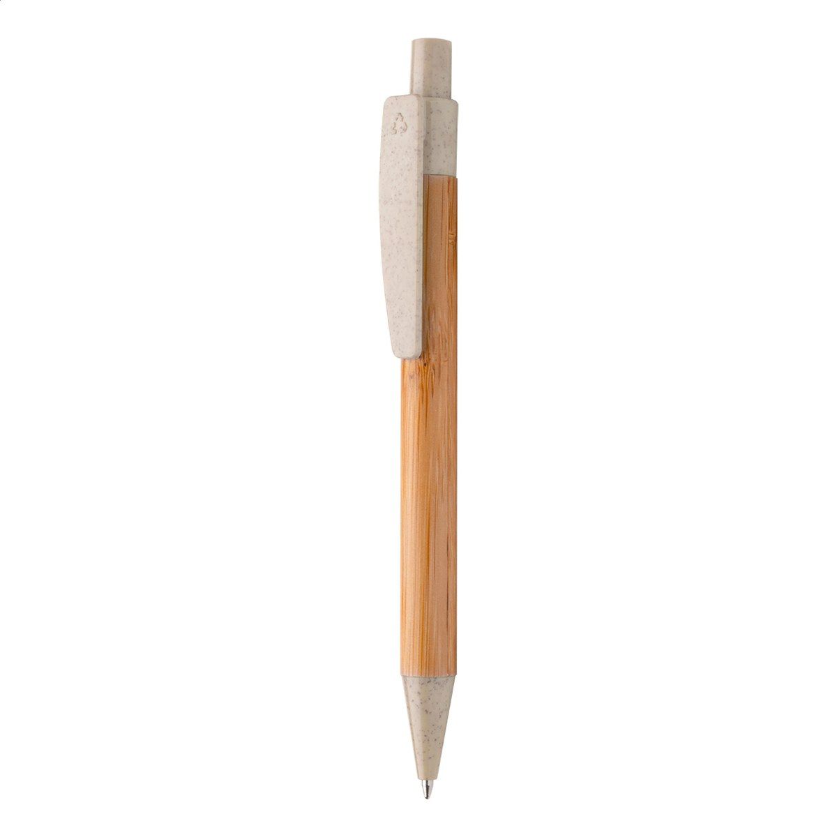 Kuličkové pero z bambusu s klipem a špičkou ze slámy, s modrou náplní.