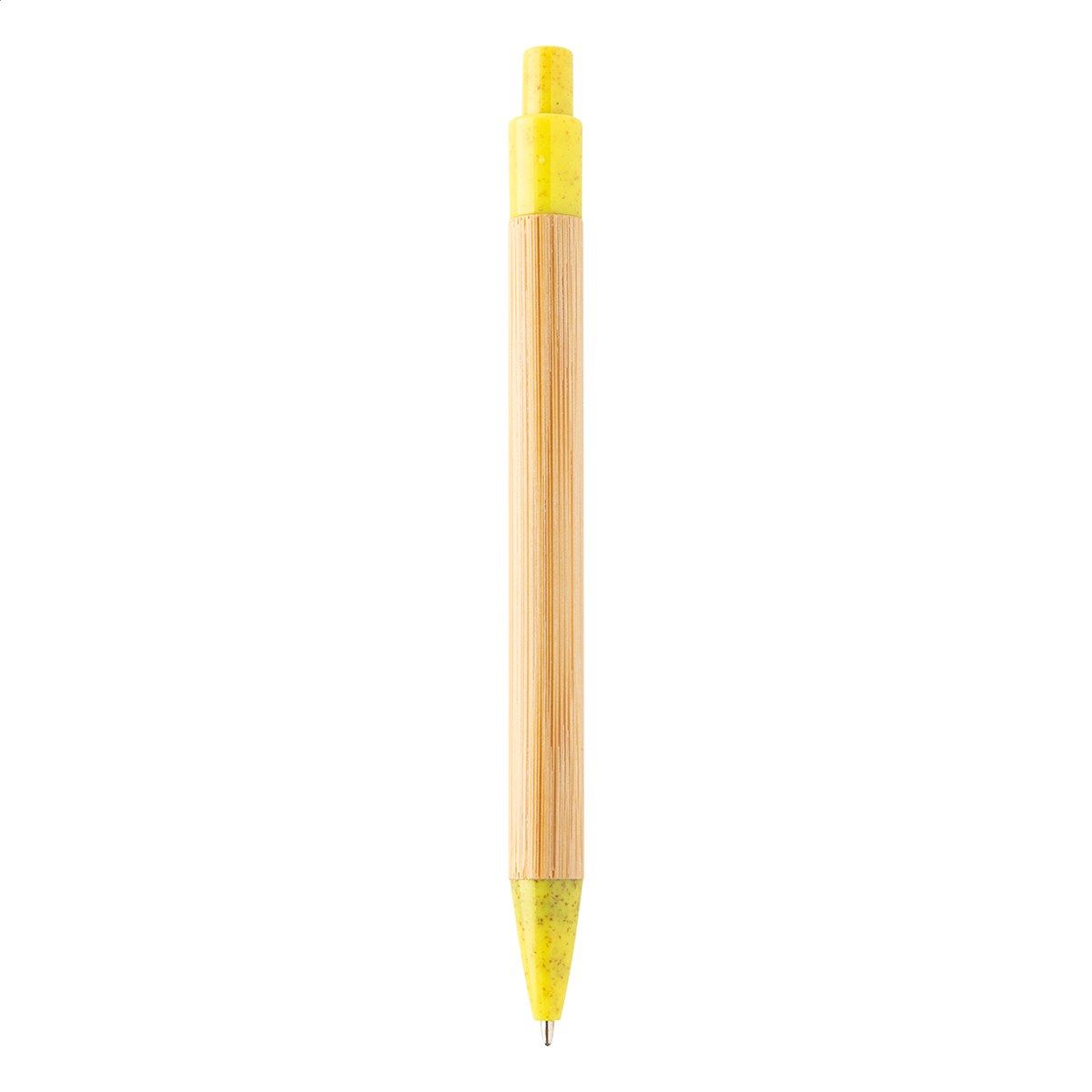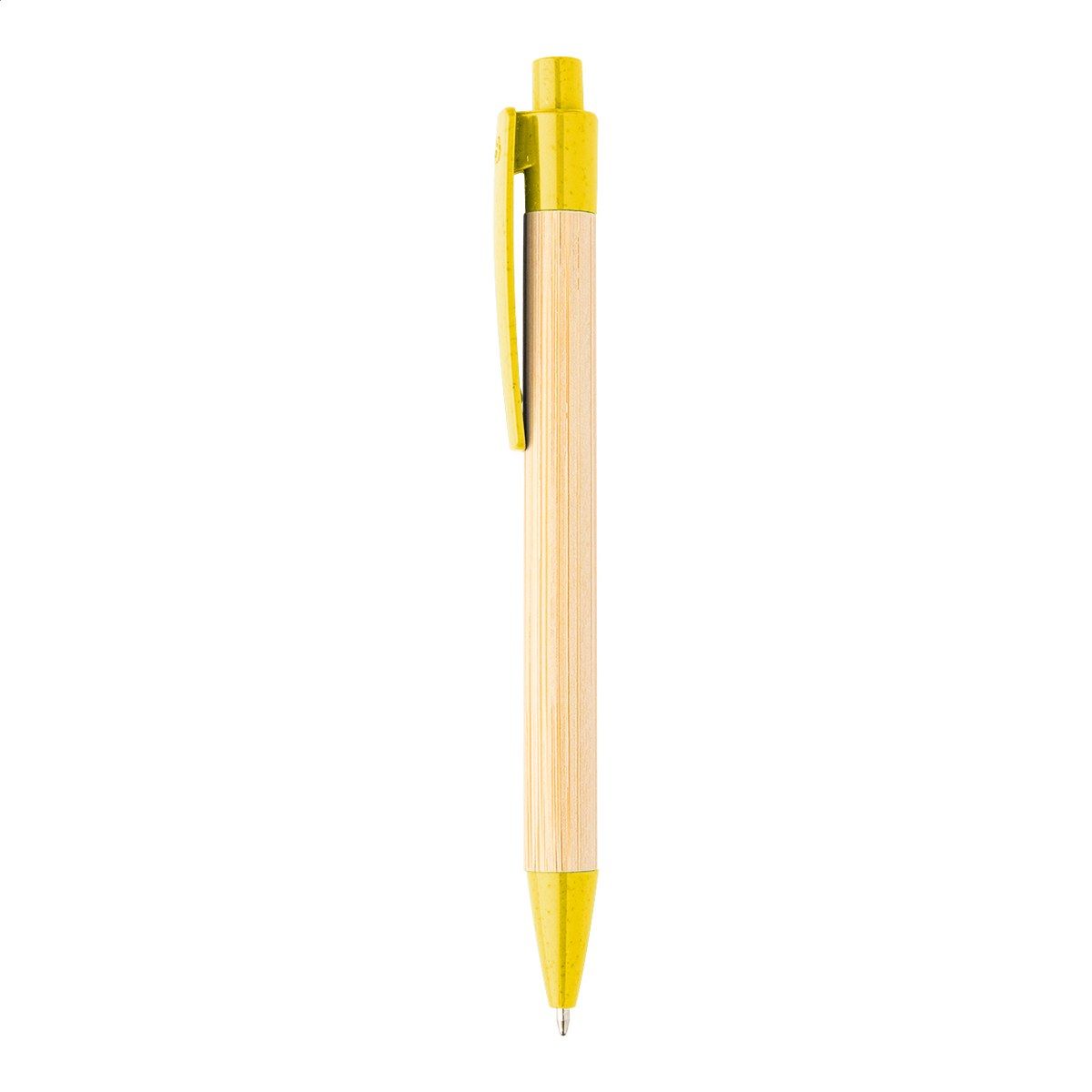 Kuličkové pero z bambusu s klipem a špičkou ze slámy, s modrou náplní.