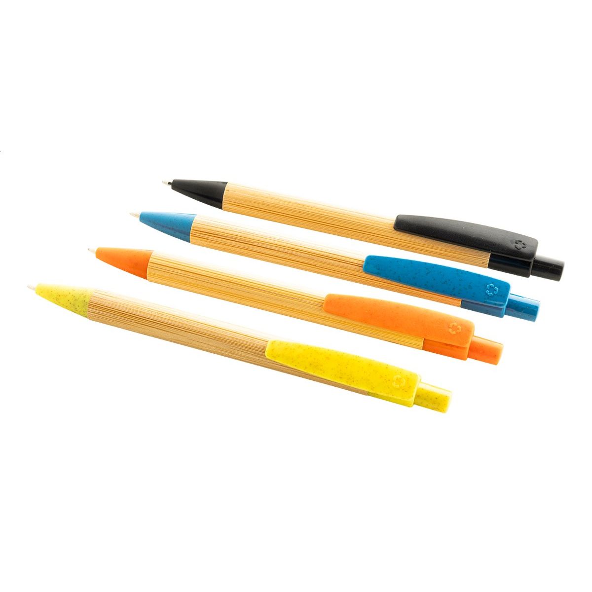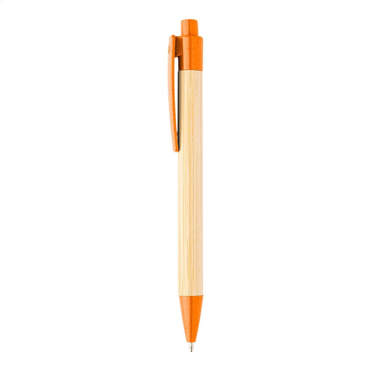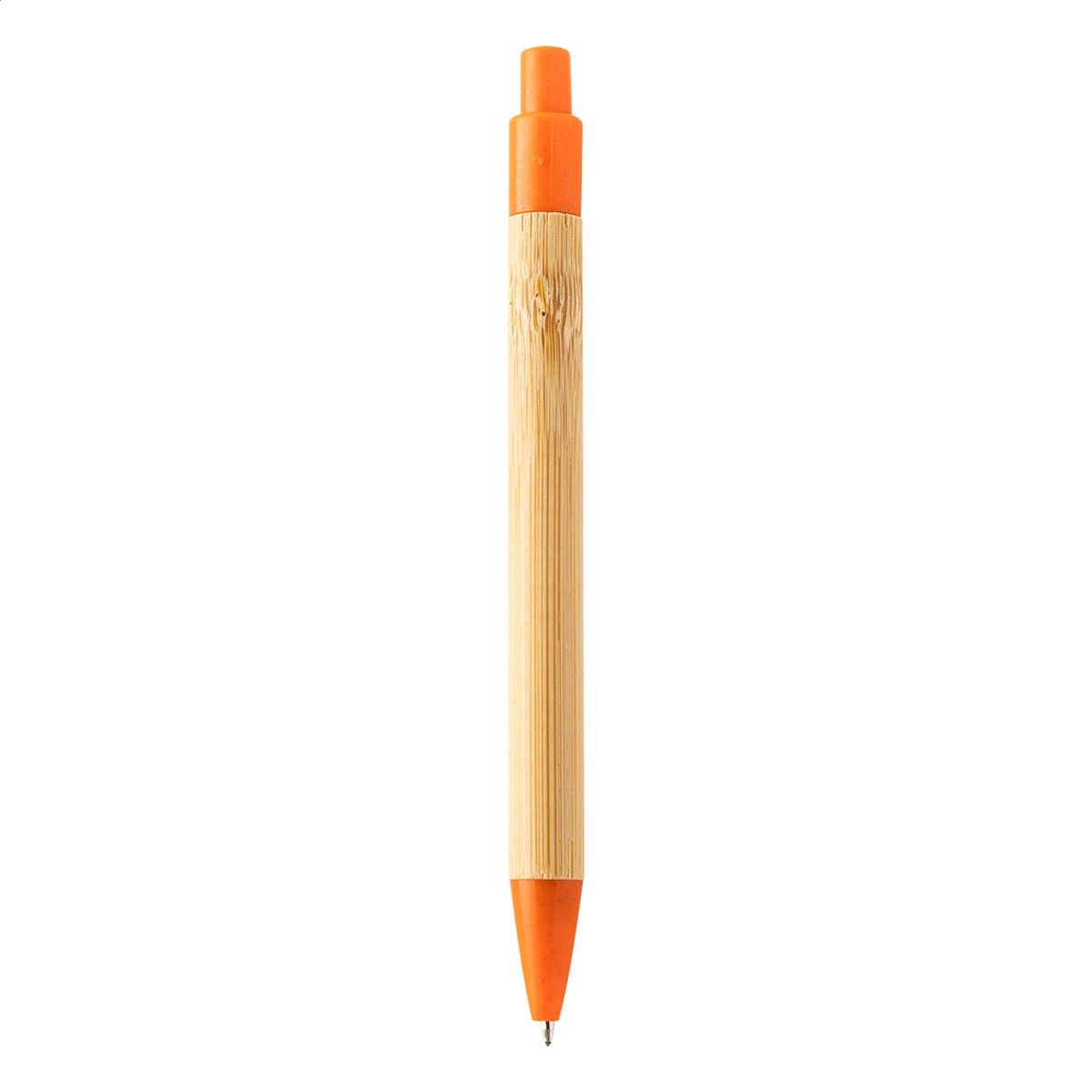 Kuličkové pero z bambusu s klipem a špičkou ze slámy, s modrou náplní.