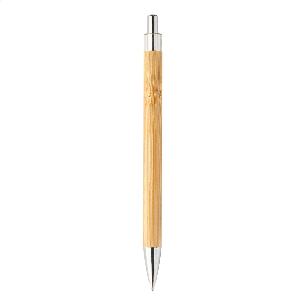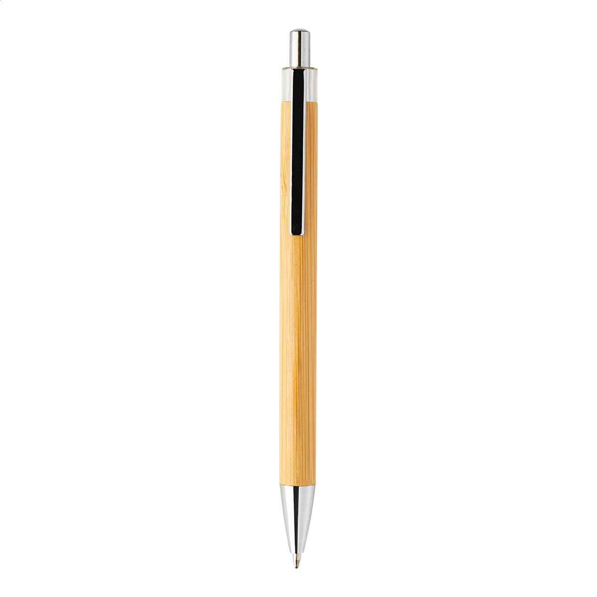 Bambusové kuličkové pero s průhlednou horní částí a chromovými detaily.