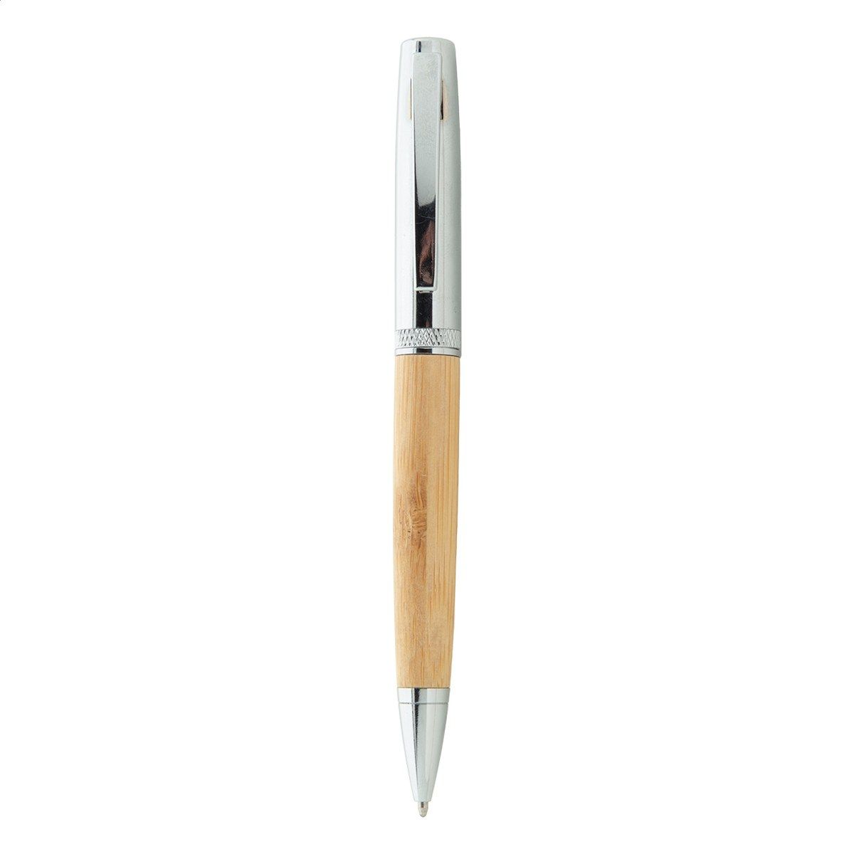 Elegantní kovové kuličkové pero s bambusovým tělem a lesklými chromovanými částmi. V bambusovém pouzdře s chromovým uzávěrem. S modrou náplní.