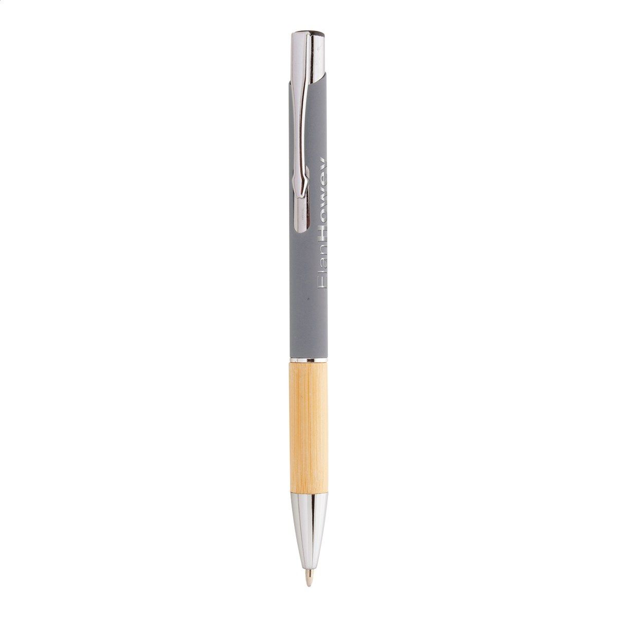 Hliníkové kuličkové pero s bambusovým úchopem, pogumovaným povrchem a modrou náplní. Se speciální vrstvou pro zrcadlové laserové gravírování.