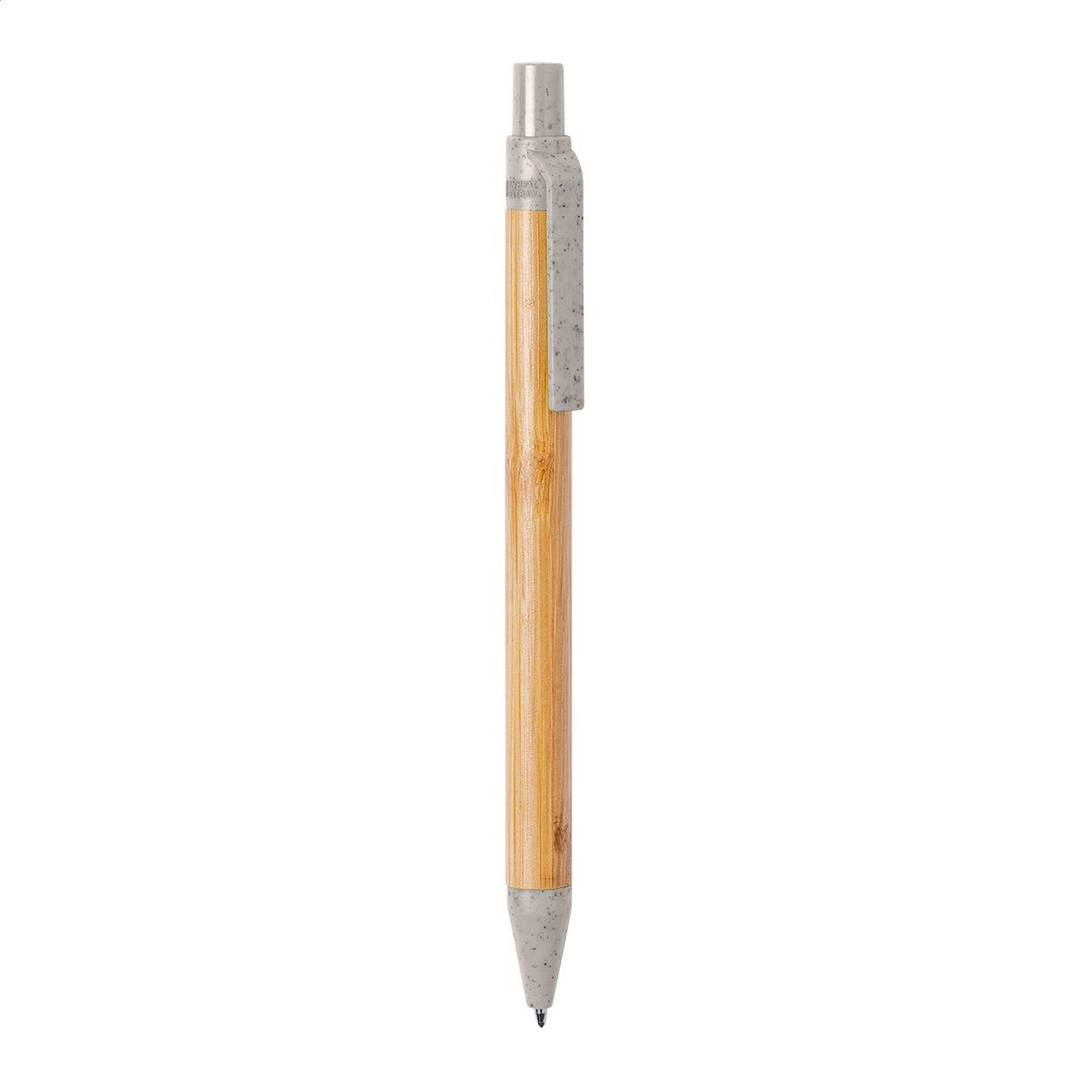 Bambusové kuličkové pero s plastovými částmi z ekologické pšeničné slámy. S modrou náplní.