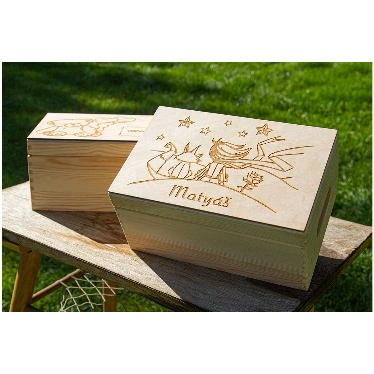 Zkuste naši krásnou dárkovou krabičku z borovicového dřeva, kterou opatříme motivem přímo na míru.