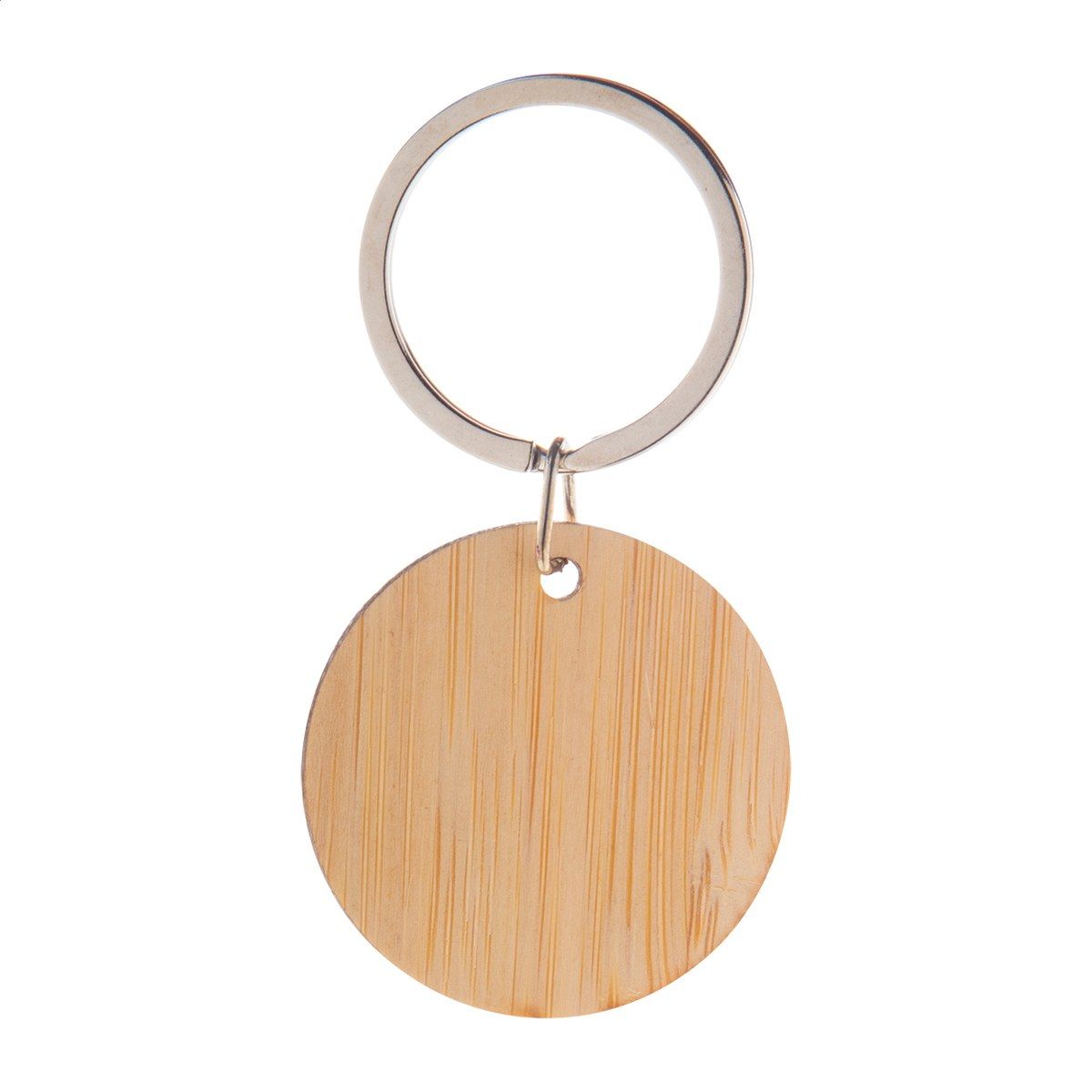 Bambusový přívěsek na klíče s kovovým kroužkem.