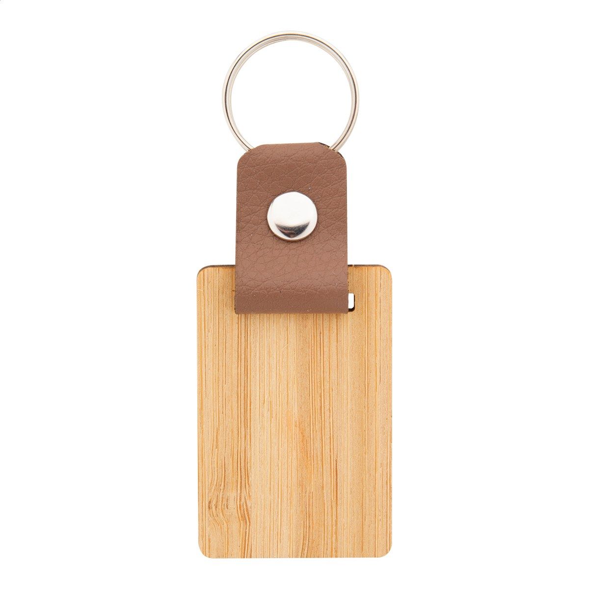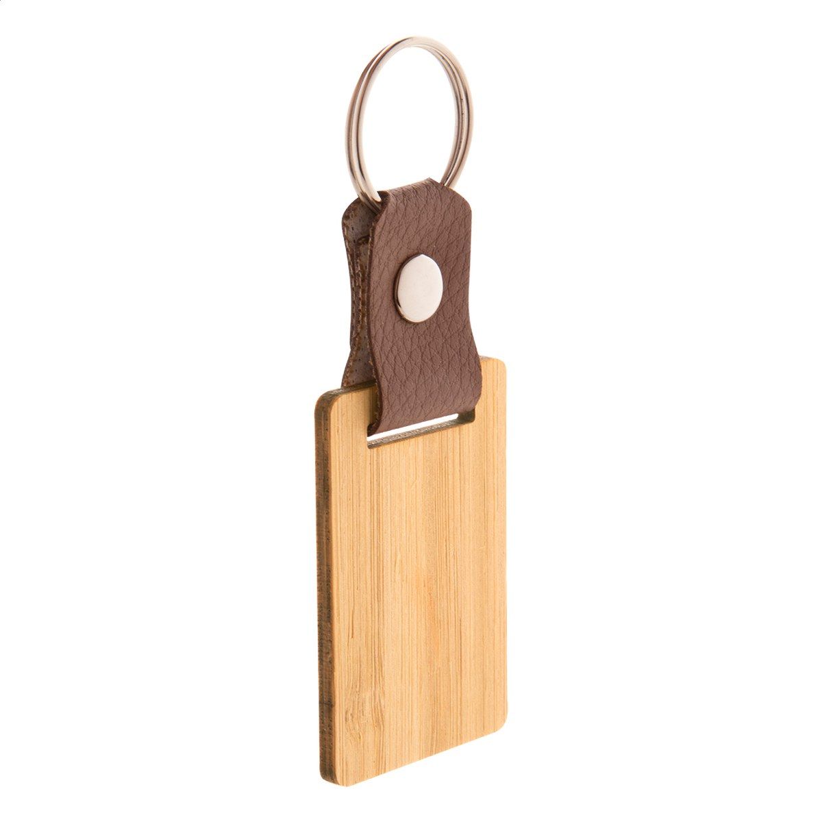 Přívěšek na klíče z bambusu a PU kůže s kovovým kroužkem.
