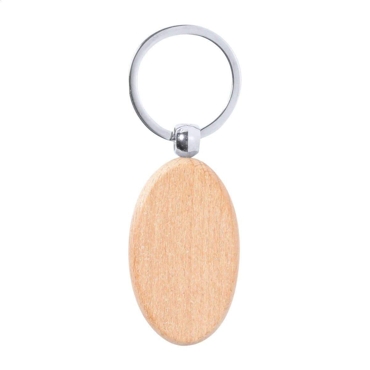 Přívěsek na klíče z přírodního bukového dřeva s kovovým kroužkem.