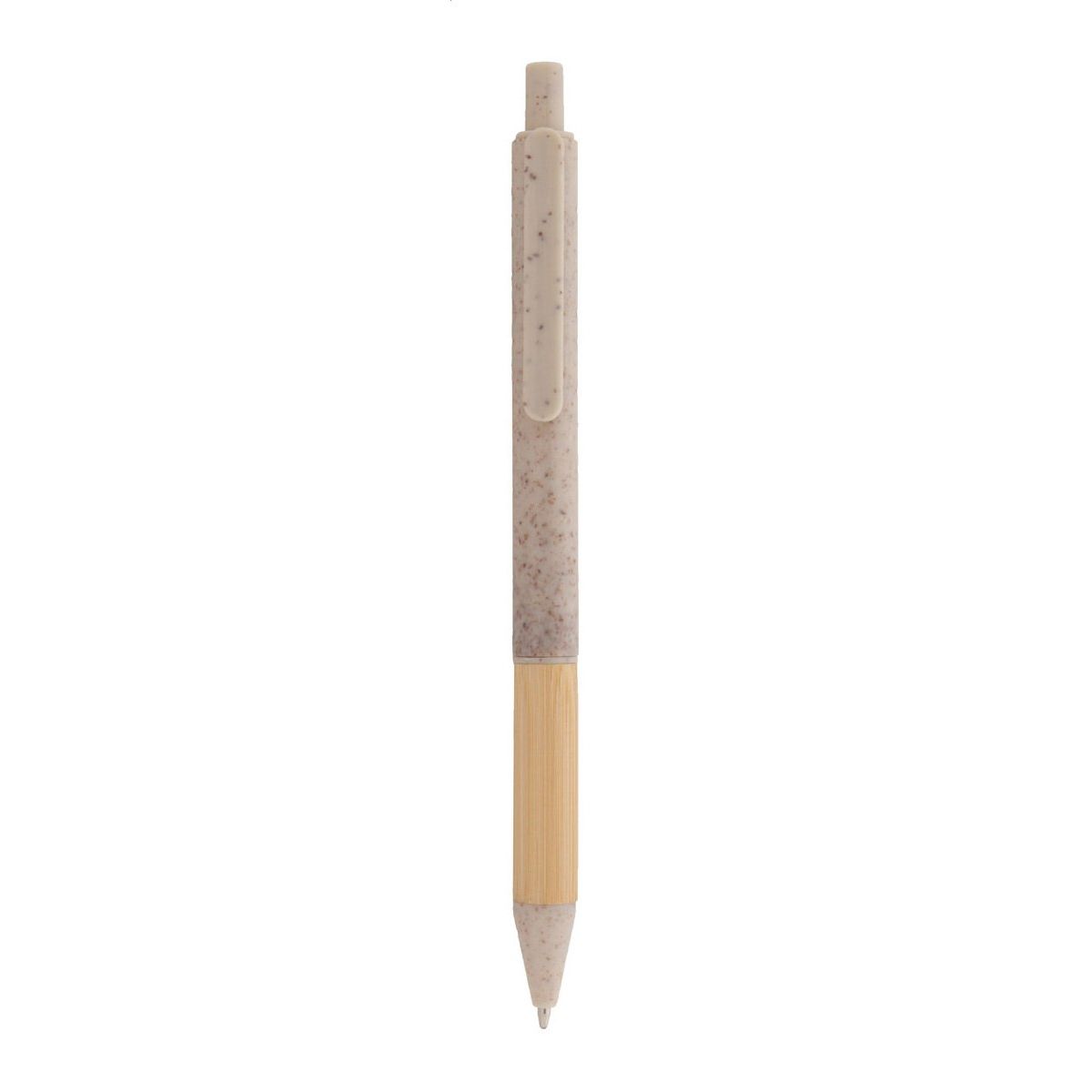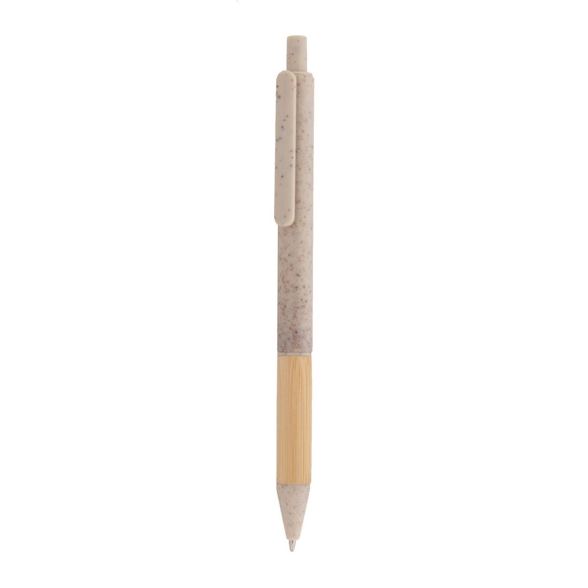 Ekologické plastové kuličkové pero z pšeničné slámy s bambusovým úchopem a barevnými částmi. S modrou náplní.