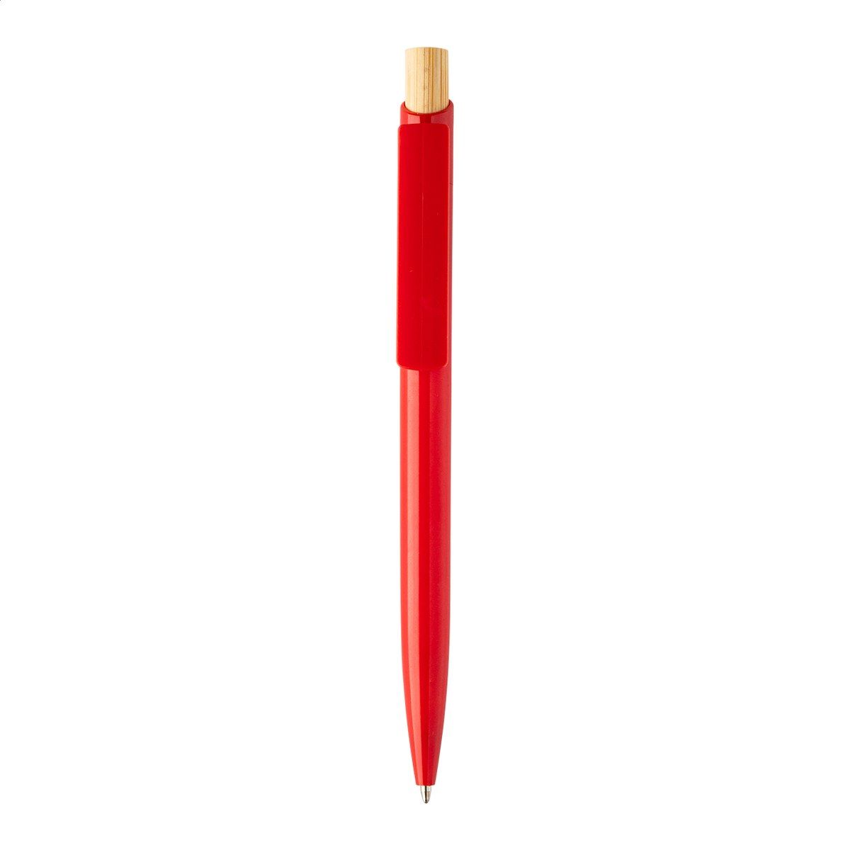 Kuličkové pero z recyklovaného ABS plastu s bambusovým tlačítkem. S modrou náplní.