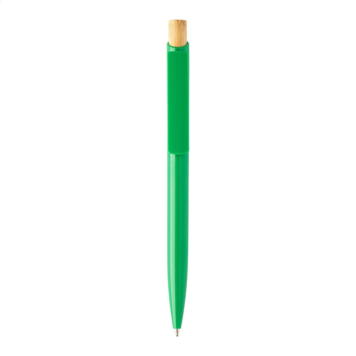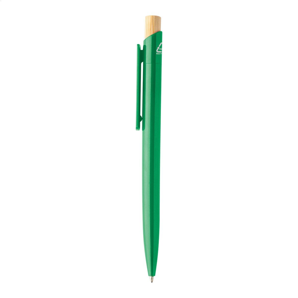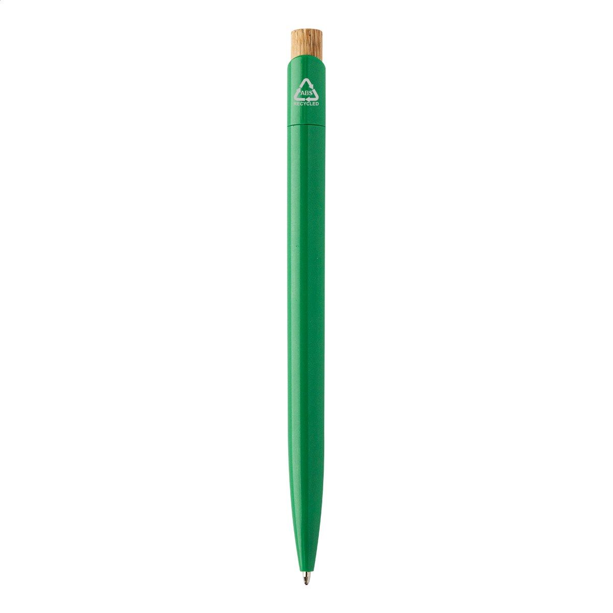 Kuličkové pero z recyklovaného ABS plastu s bambusovým tlačítkem. S modrou náplní.