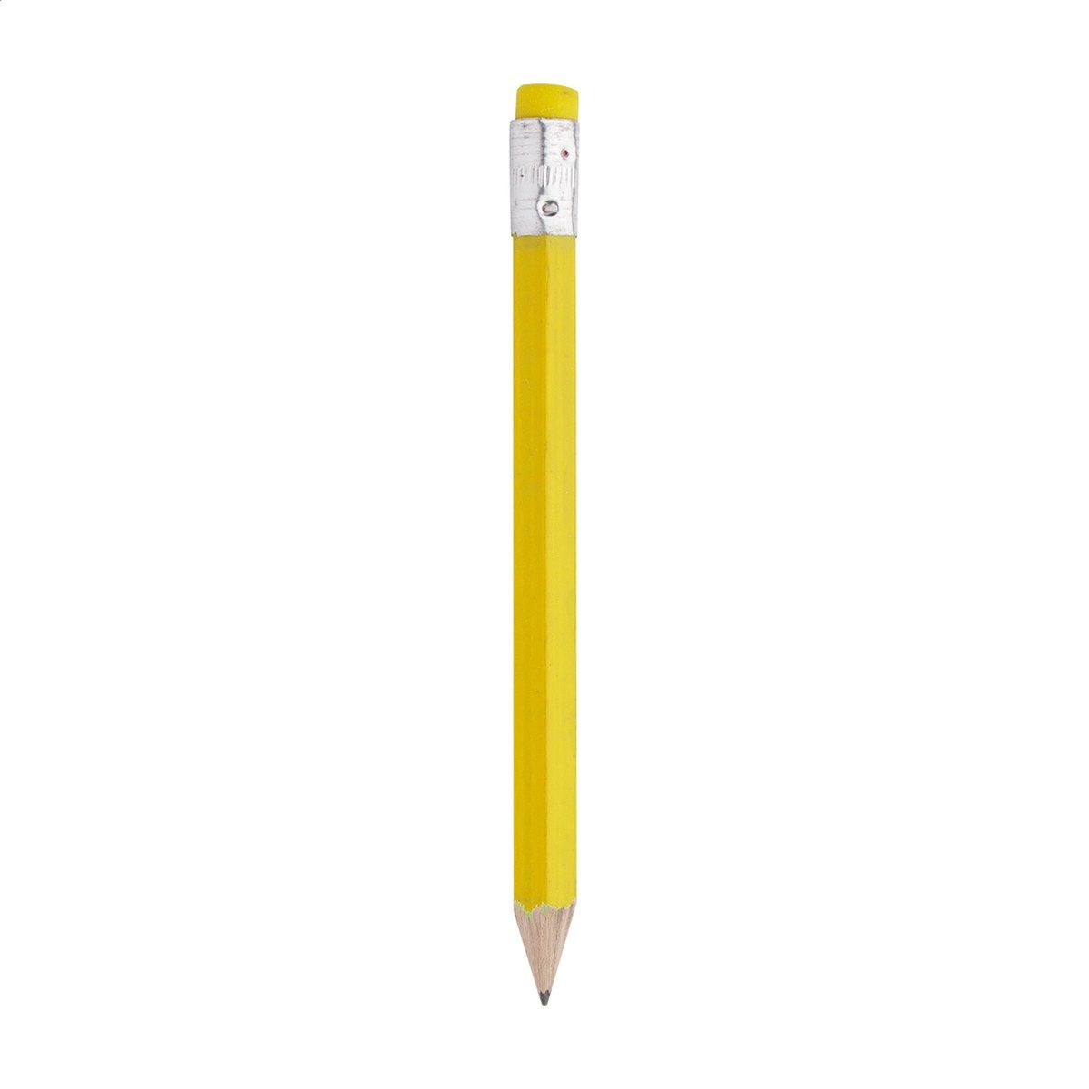 Dřevěná, malá tužka s gumou na konci, ořezaná.