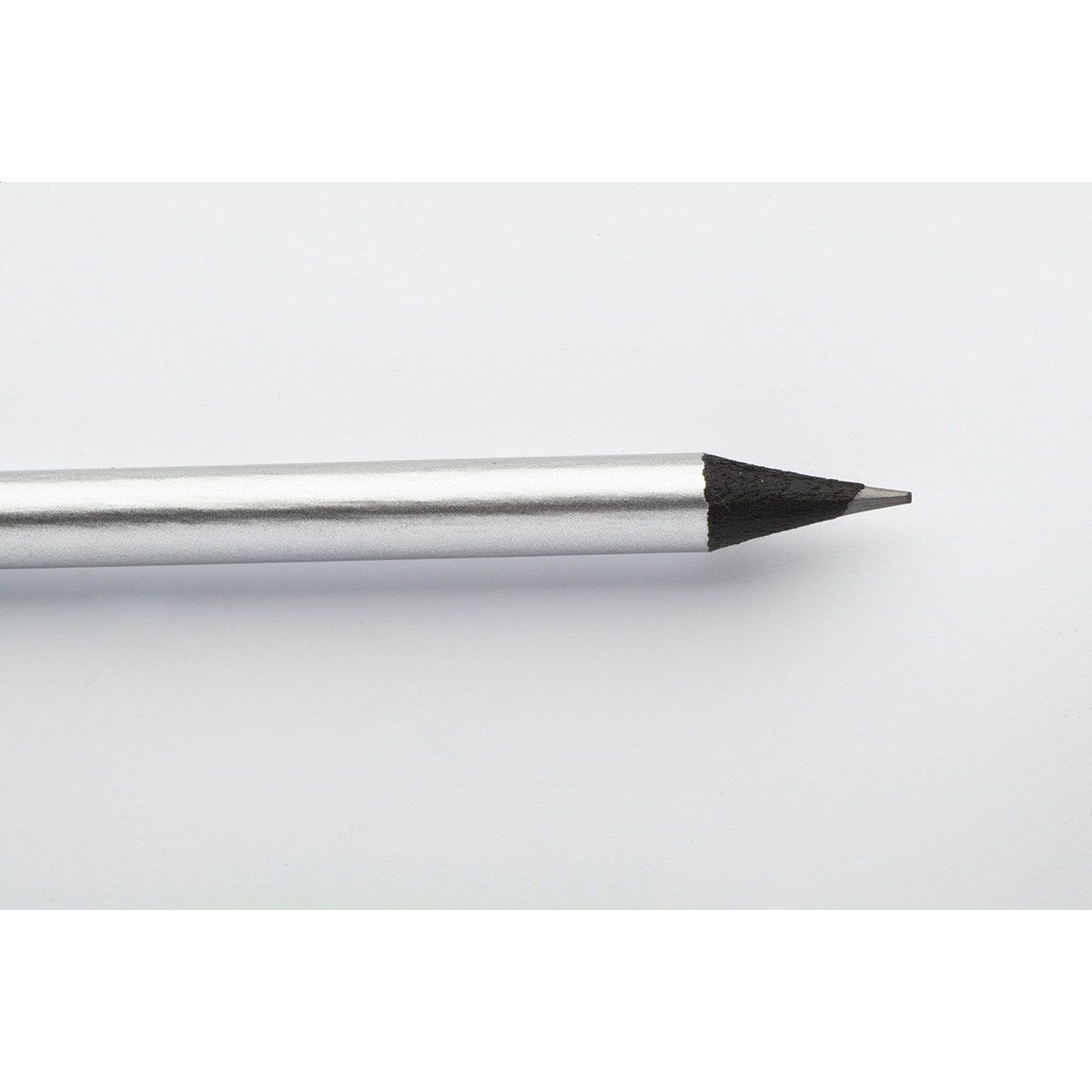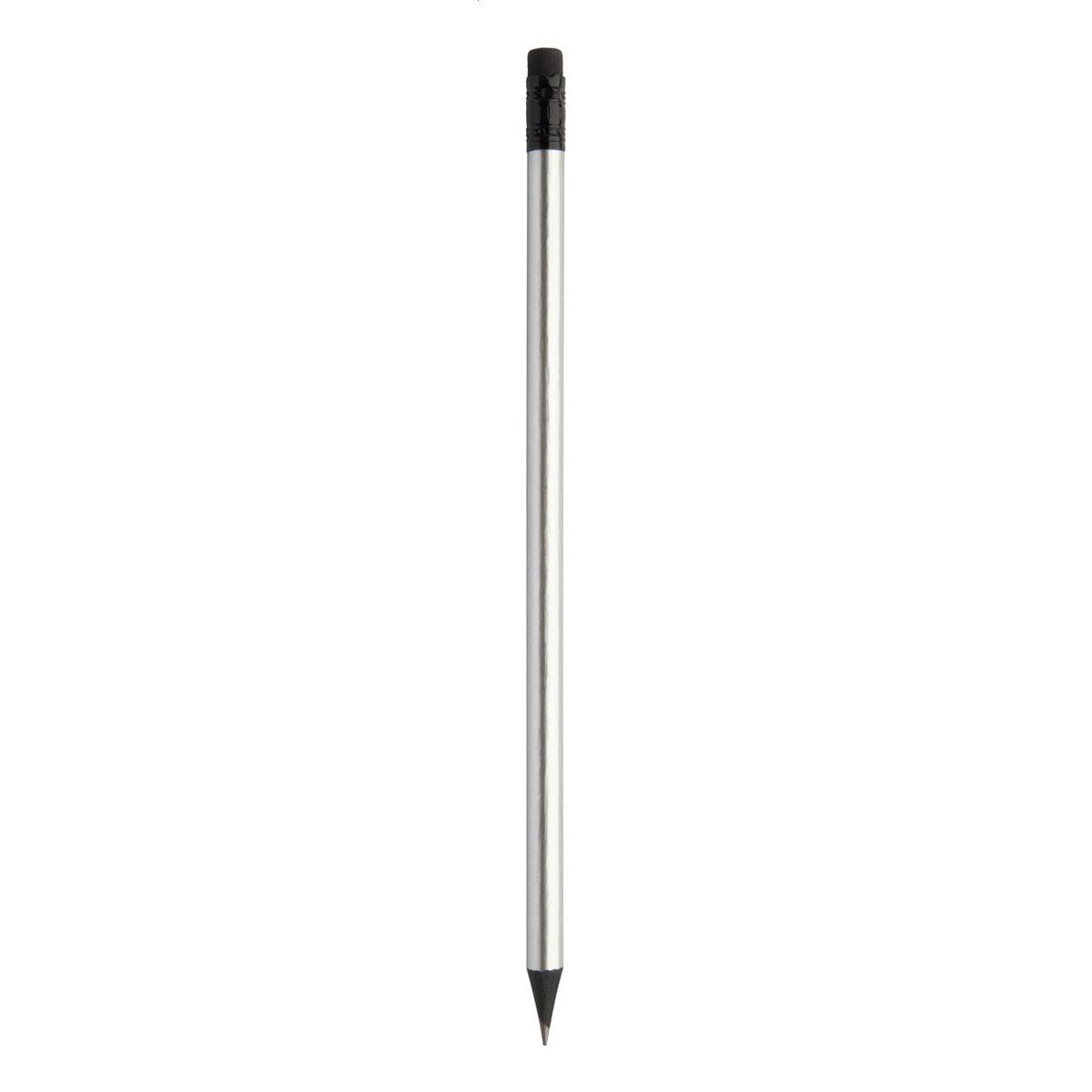 Černá dřevěná tužka v metalickém provedení, s černou gumou. Ořezaná, třída HB.