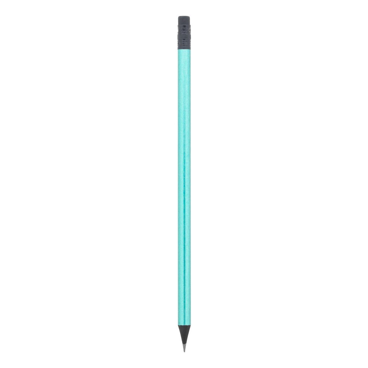 Černá dřevěná tužka v metalickém provedení, s černou gumou. Ořezaná, třída HB.