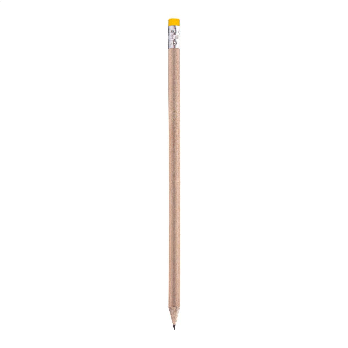 Tužka z přírodního dřeva s barevnou gumou. Dodává se neořezaná.