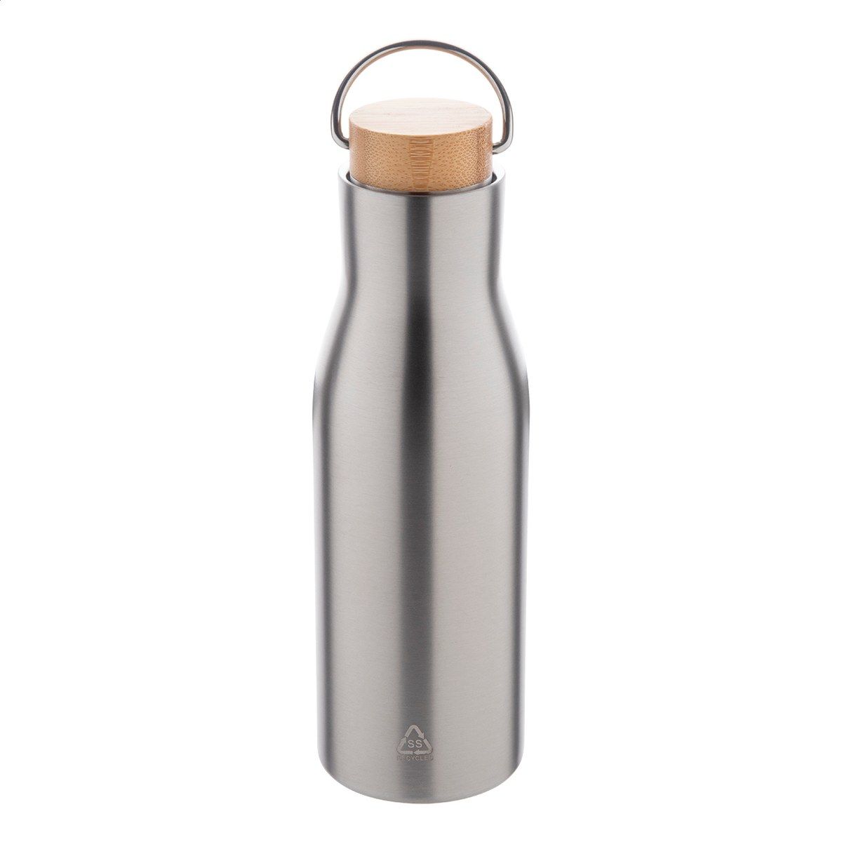 Dvoustěnná nerezová termoska z recyklované nerezové oceli s bambusovým víkem, 500 ml.