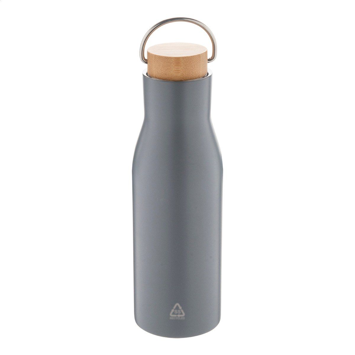 Dvoustěnná nerezová termoska z recyklované nerezové oceli s bambusovým víkem, 500 ml.