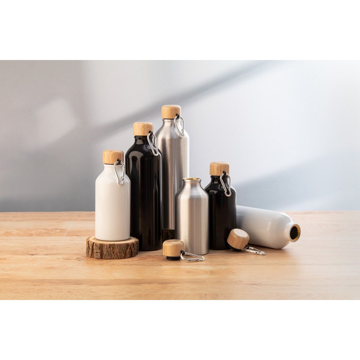 Hliníková láhev s bambusovým víčkem a karabinou, 800 ml.