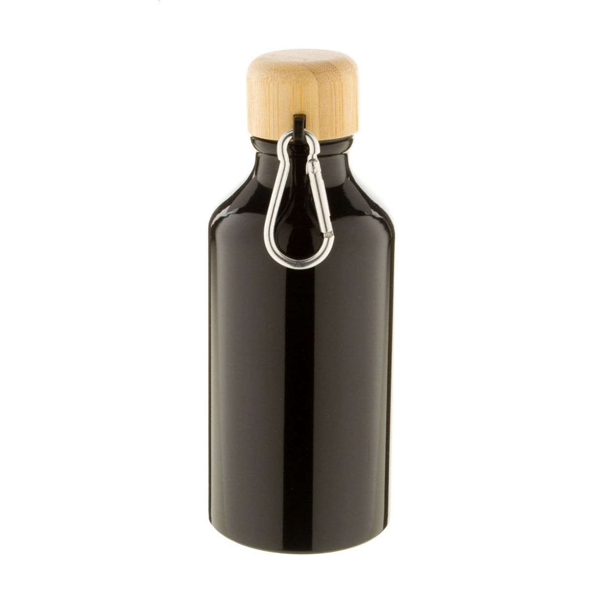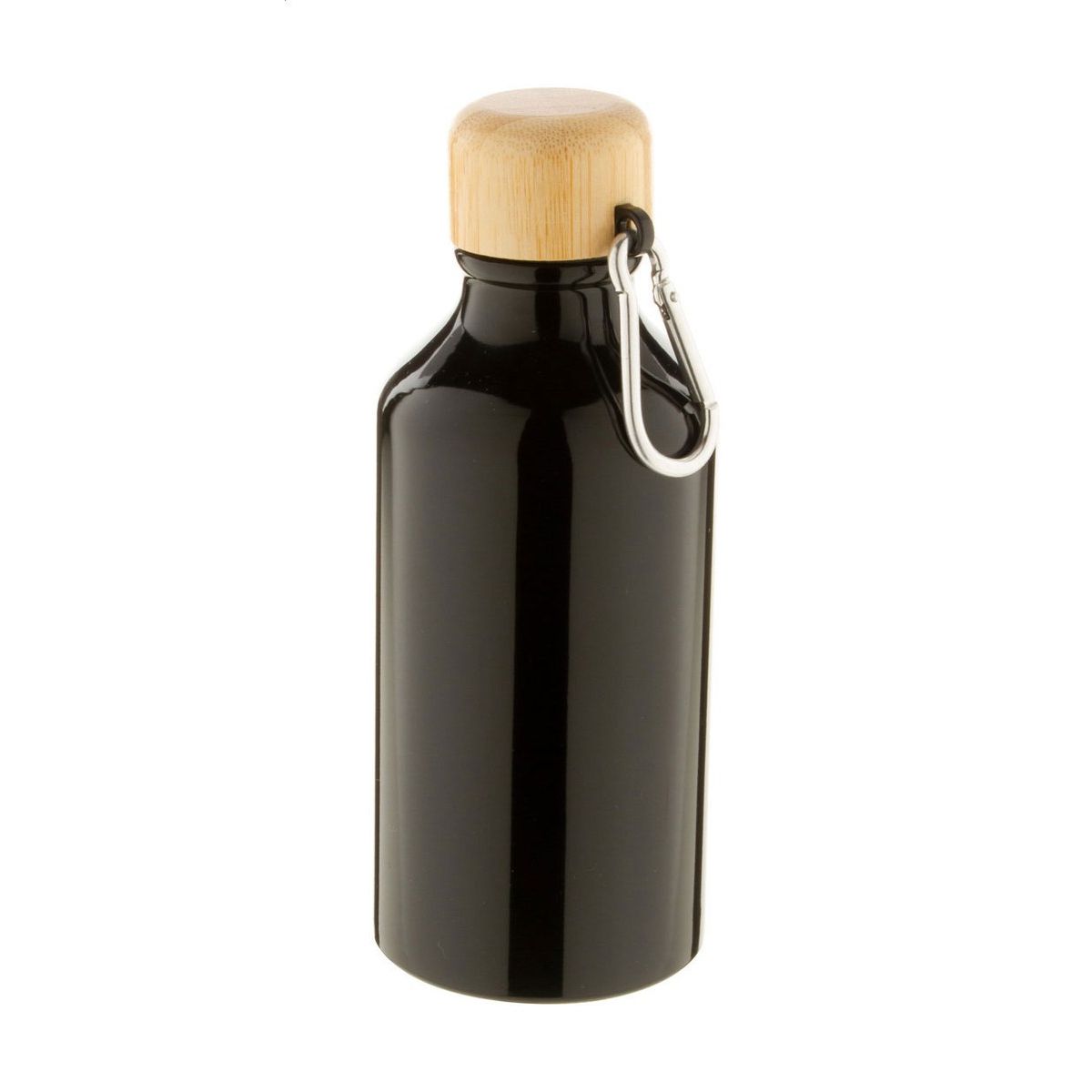 Hliníková láhev s bambusovým víčkem a karabinou, 400 ml.
