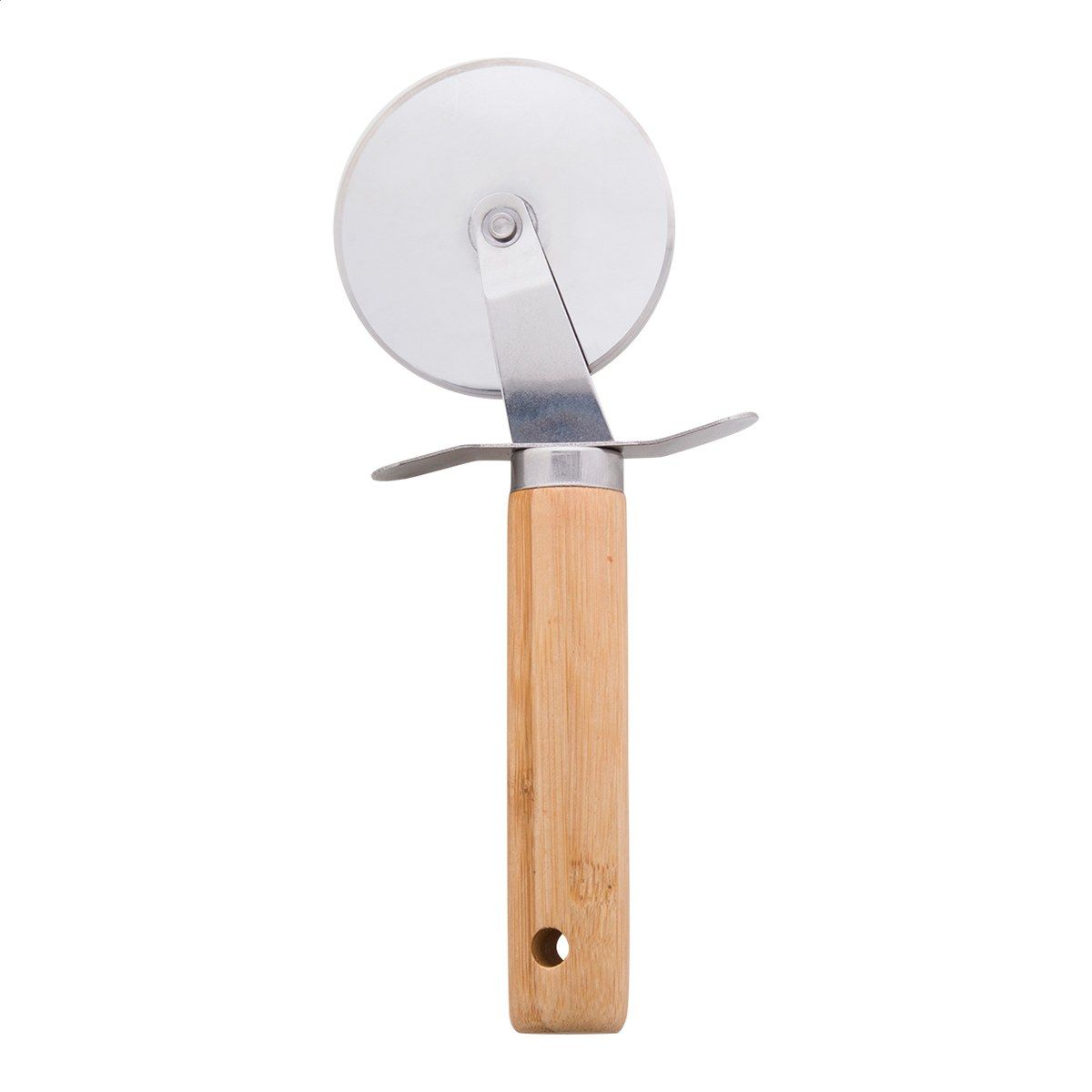 3dílná sada na servírování pizzy z nerezové oceli s bambusovou rukojetí v bavlněné taštičce se stahovací šňůrkou. Včetně struhadla na sýr, kráječe na pizzu a špachtle.