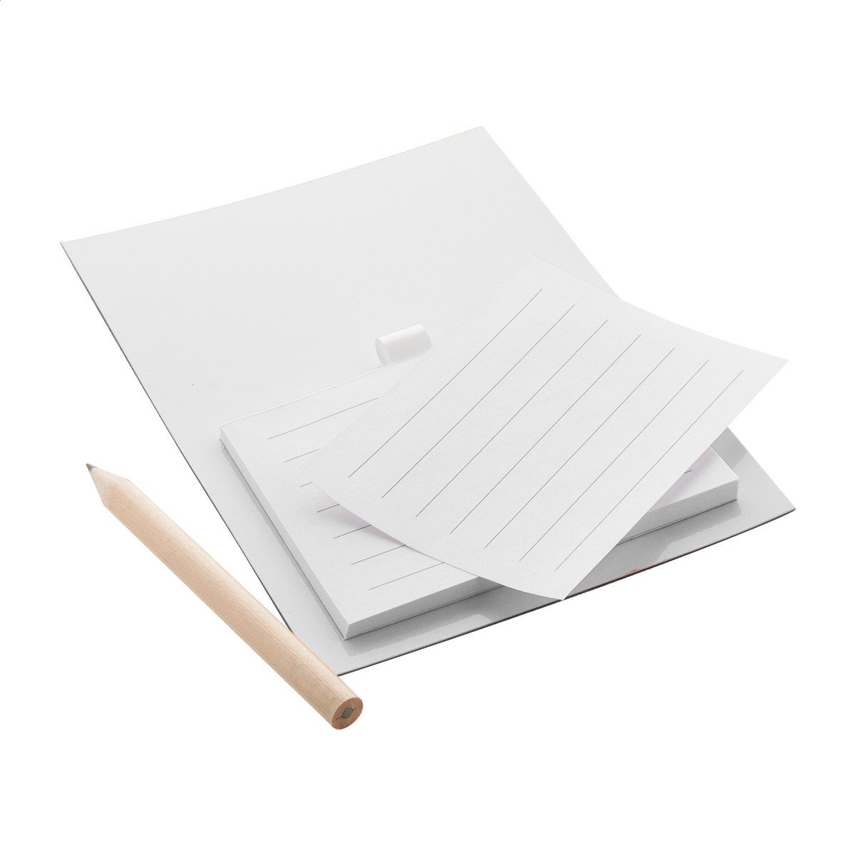 Barevná magnetka na ledničku se 40ti listým blokem a mini dřevěnou tužkou.