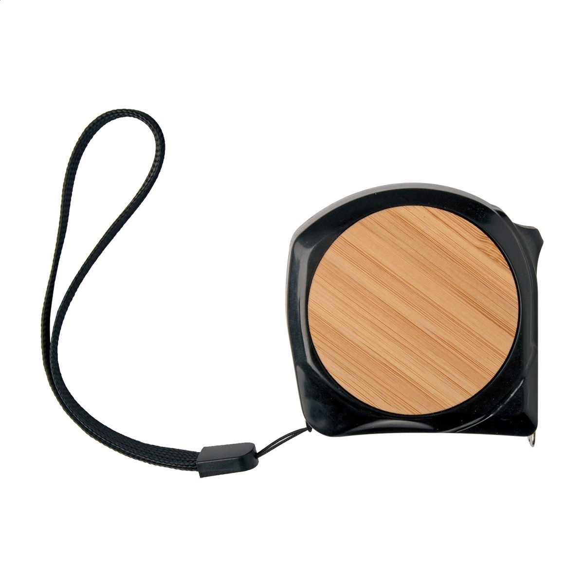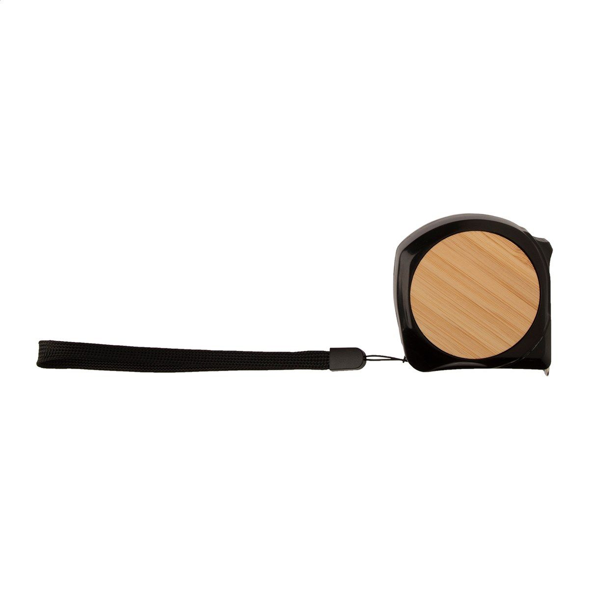 Plastový a bambusový svinovací metr s aretací, kovovým klipem a poutkem na ruku, 5 m.