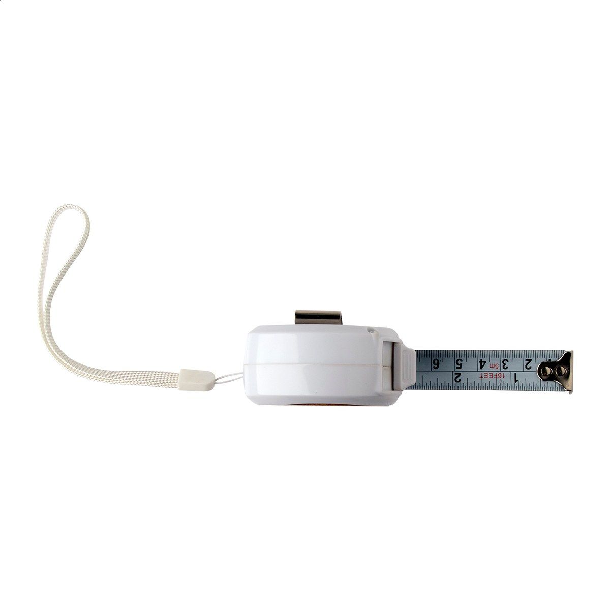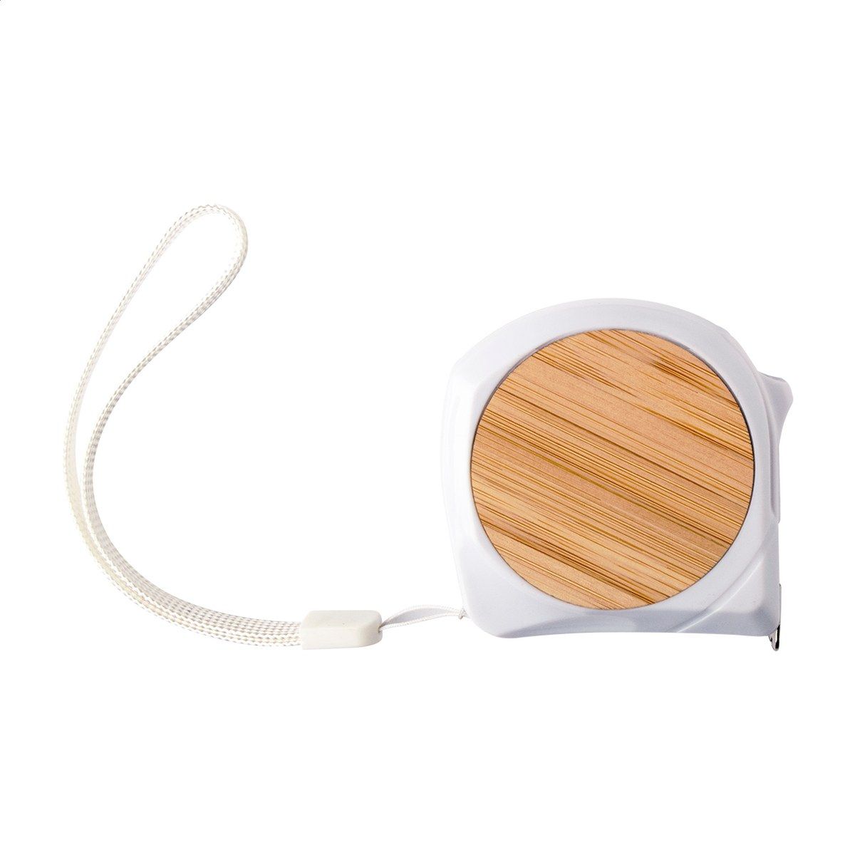 Plastový a bambusový svinovací metr s aretací, kovovým klipem a poutkem na ruku, 5 m.