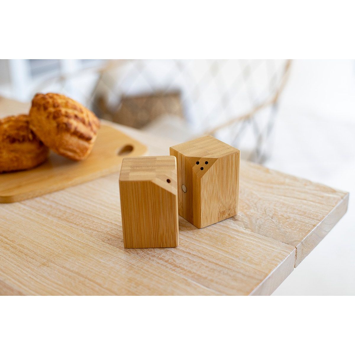 Sada 2 ks bambusové solničky a pepřenky. Sada je spojena ve středu díky magnetům umístěným na straně.