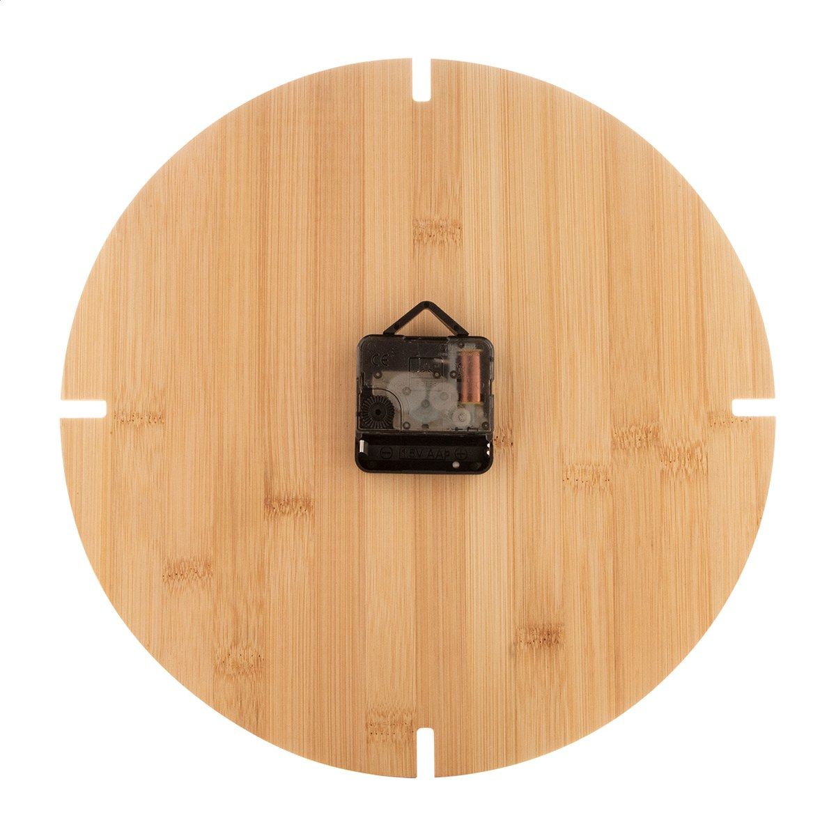 Kulaté nástěnné hodiny z bambusu. Funguje na 1 AA baterii, dodává se bez baterie.