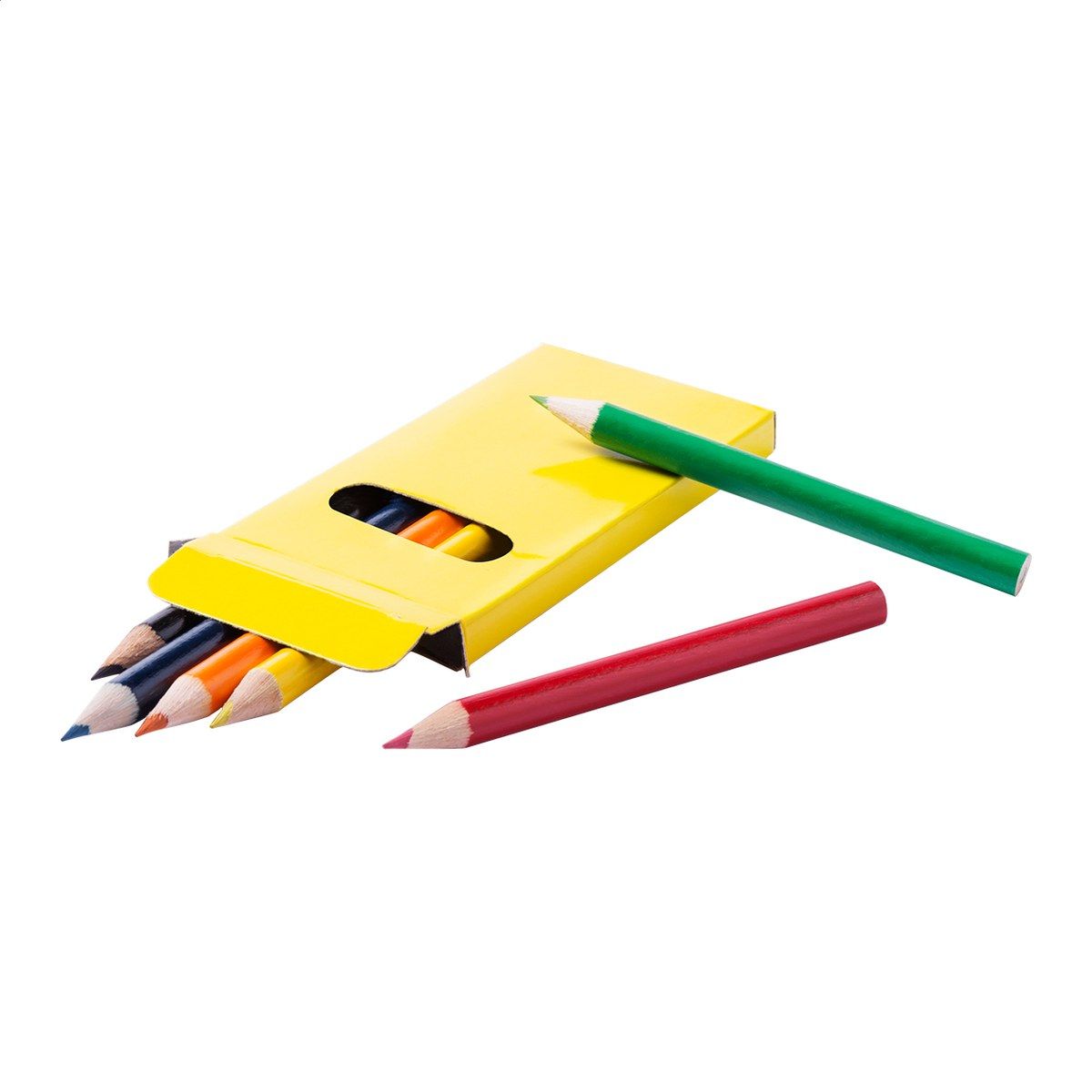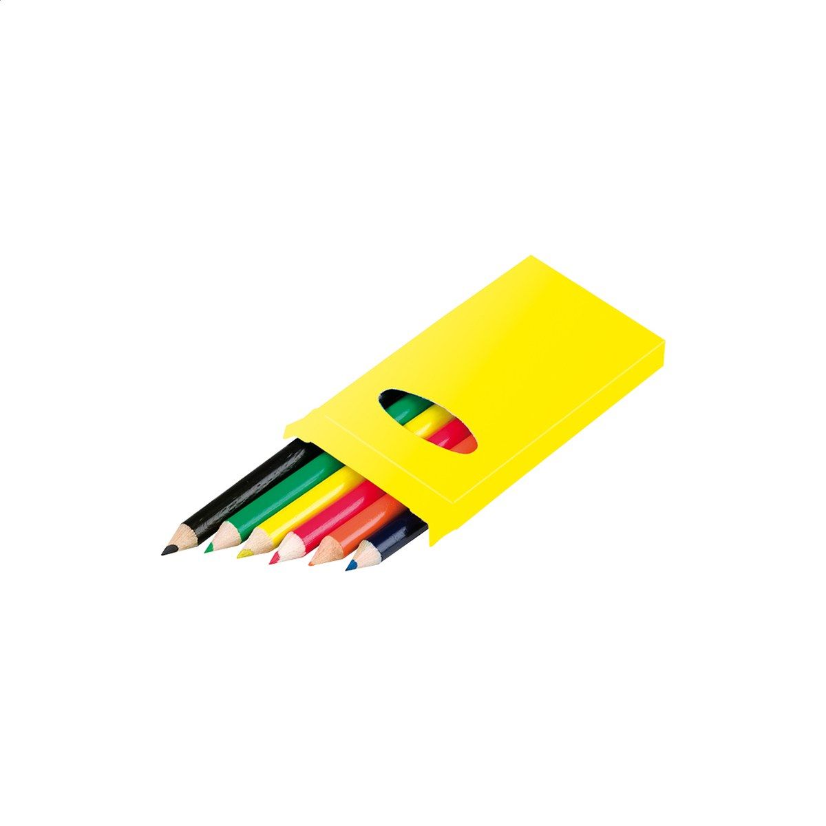 Dřevěné pastelky (6 ks) v barevné papírové krabičce.