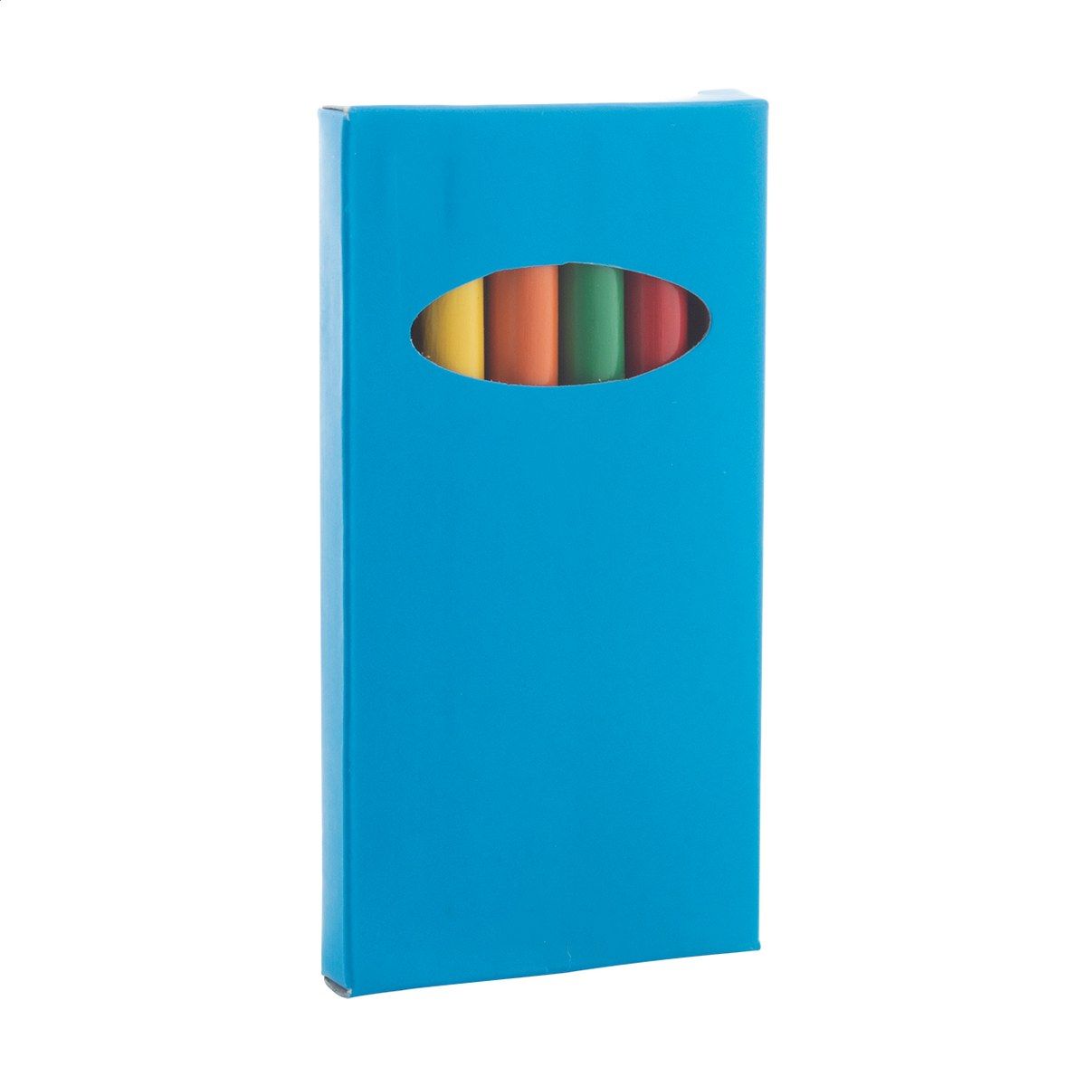 Dřevěné pastelky (6 ks) v barevné papírové krabičce.