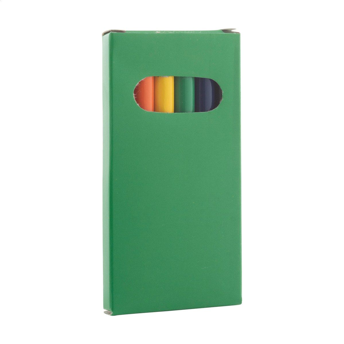 Dřevěné pastelky (6 ks) v barevné papírové krabičce.