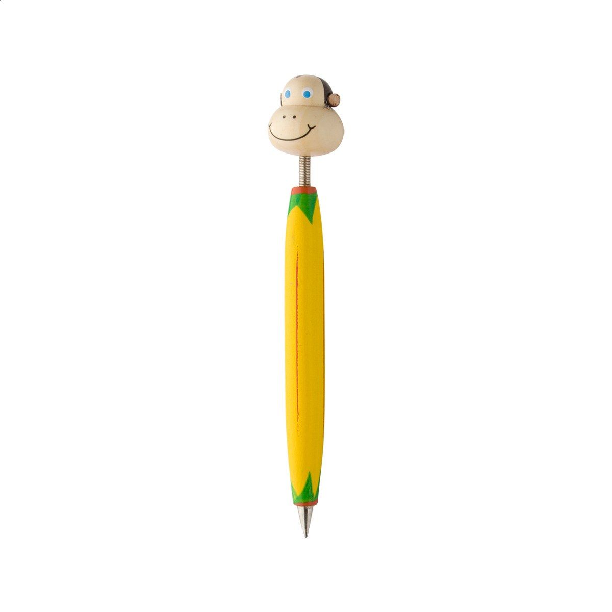Dřevěné kuličkové pero s barevnou hlavičkou zvířátka, s modrou náplní.
