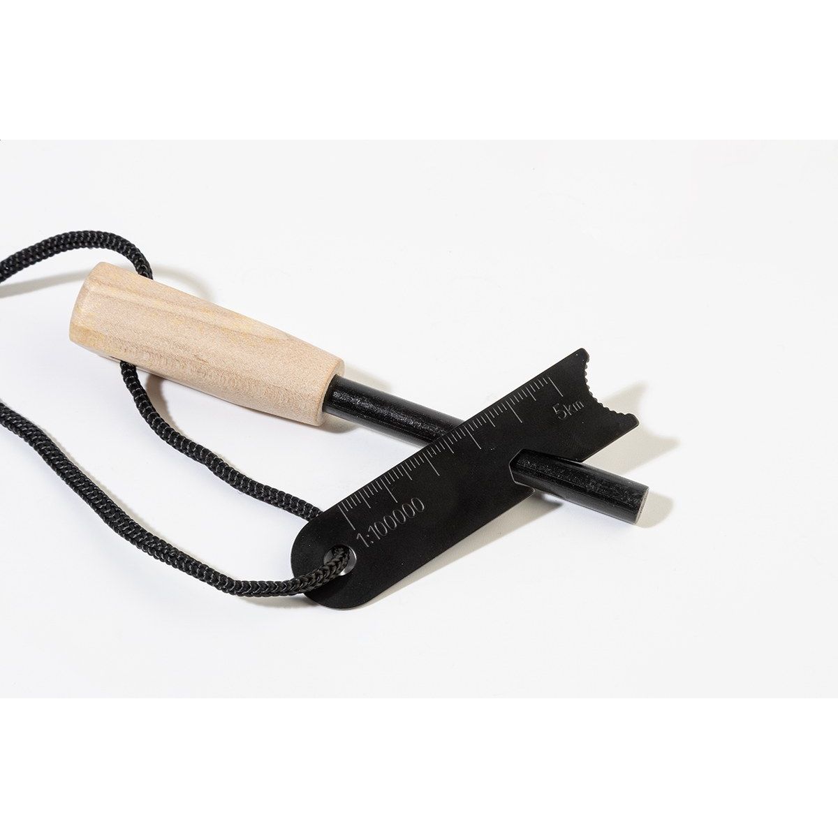 Nářadí na zapalování ohně pro přežití s dřevěnou rukojetí a multifunkční škrabkou z nerezové oceli, vybavené pravítkem, otvírákem na lahve a imbusovým klíčem.