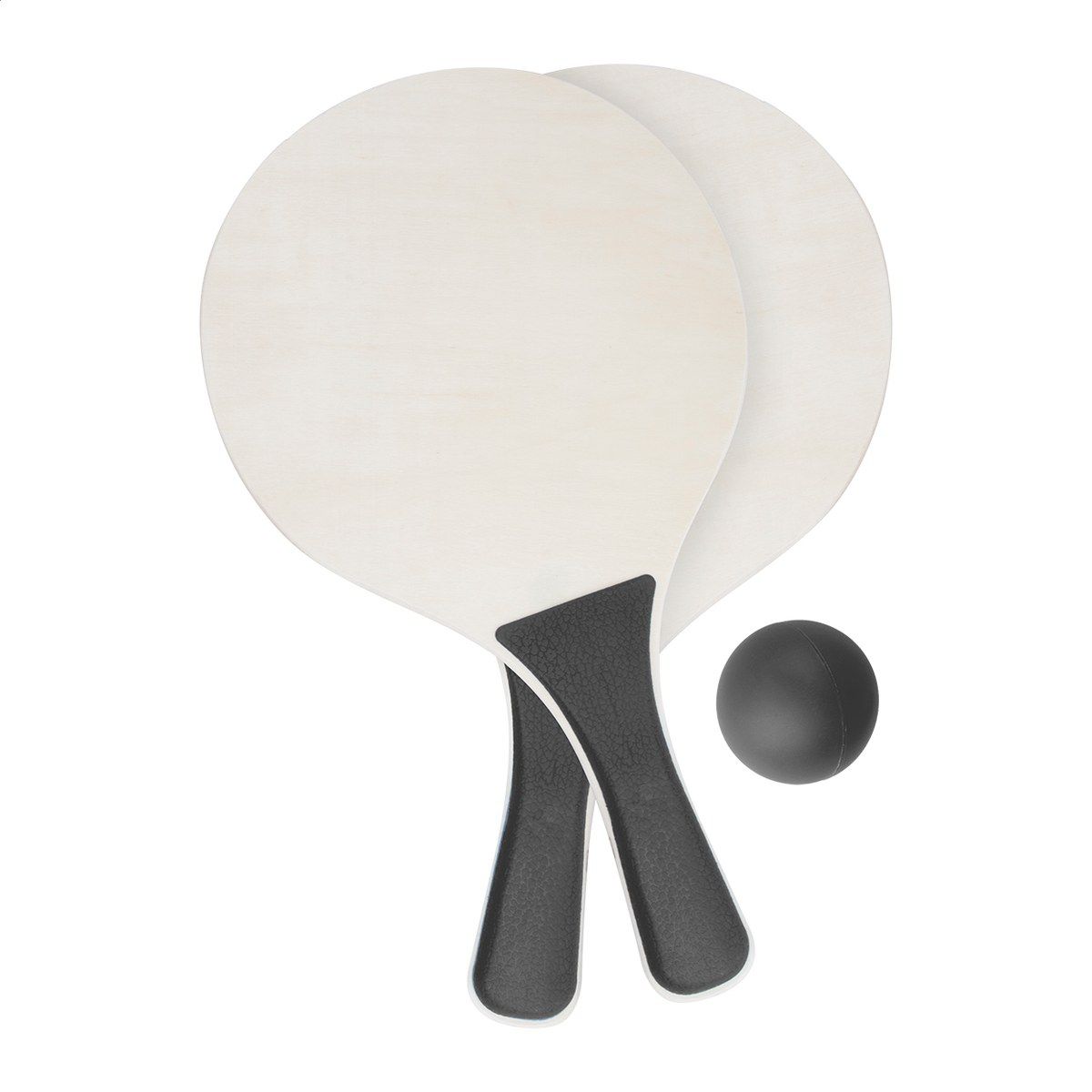 2 rakety a jeden míček, vyrobeno ze dřeva a plastu.