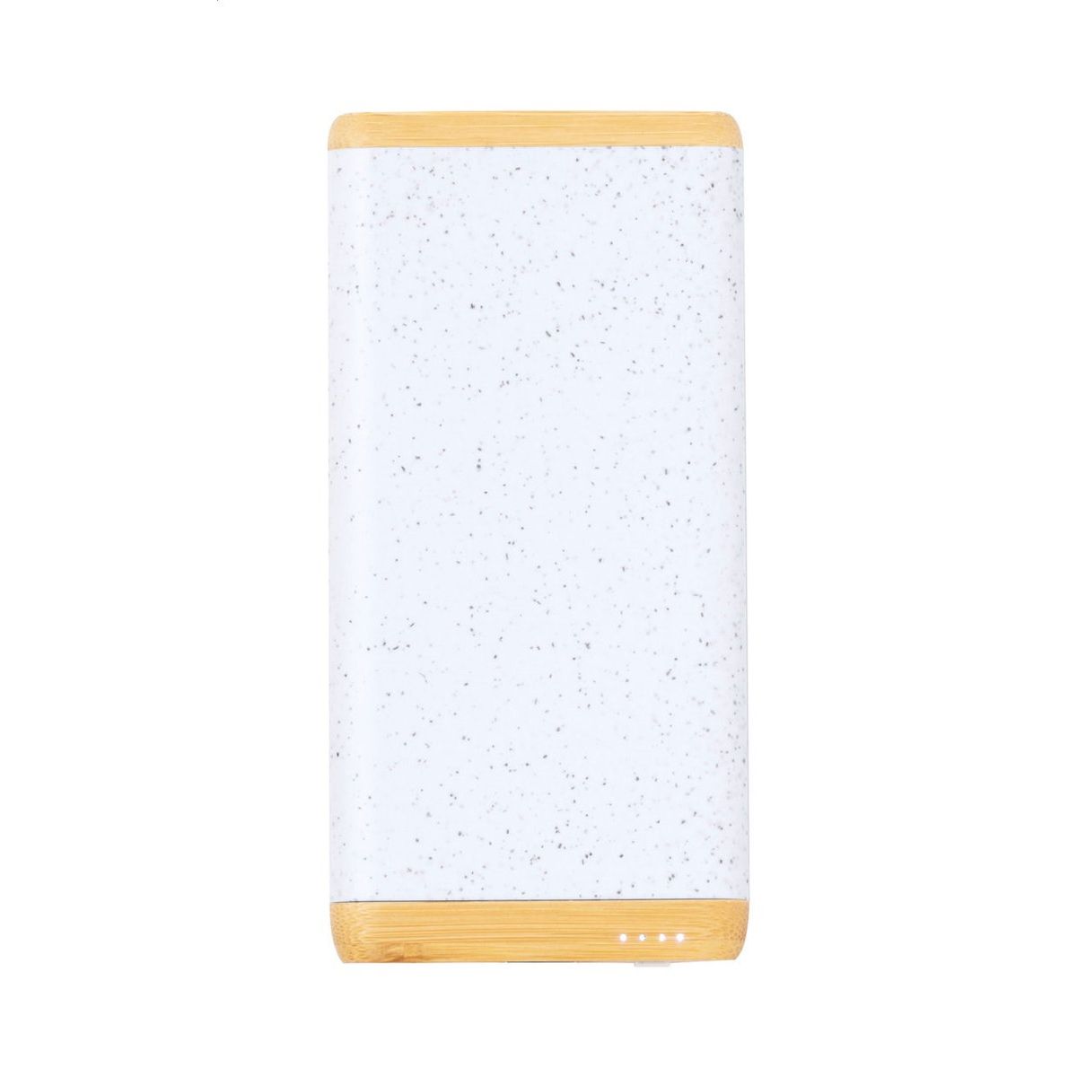 USB power banka z bambusu a ekologického plastového krytu z pšeničné slámy s 5000 mAh baterií. S 1 portem USB a 1 portem USB-C pro nabíječku. Vstupní port USB-C. Včetně USB nabíjecího kabelu.