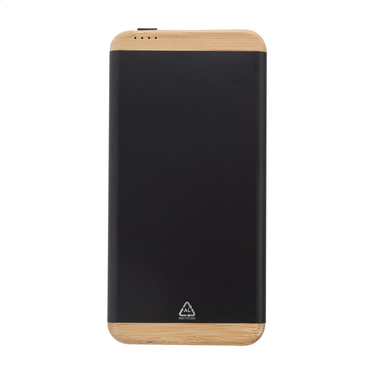 Power banka z recyklovaného hliníku a bambusu s baterií 5000 mAh. S 1 portem USB a 1 portem USB-C pro nabíječku. Vstupní port USB-C. Včetně USB nabíjecího kabelu.